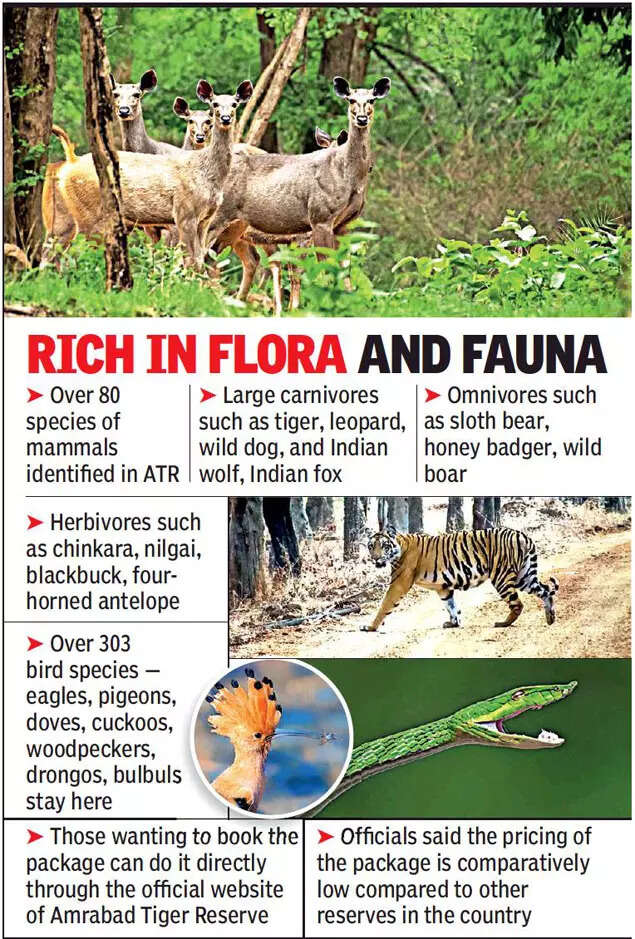 “The intention behind this package is to create awareness among the visitors for developing a sense of responsibility to protect nature and wildlife,” said Rohith Gopidi, forest divisional officer, Amrabad Division. He said that through the initiative, they also intend to generate local employment to prevent people from resorting to poaching and other forest damaging activities. Gopidi said that trekking, safari, and other activities will be conducted in areas having minimal disturbance to wildlife.