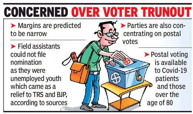 HYDERABAD: With the election date approaching, all parties in Huzurabad are vying for the attention of new voters. It is expected that 10,000 new voters will participate in this poll, a large number that will have an impact on the outcome. Parties are also going to great lengths to secure postal ballots.