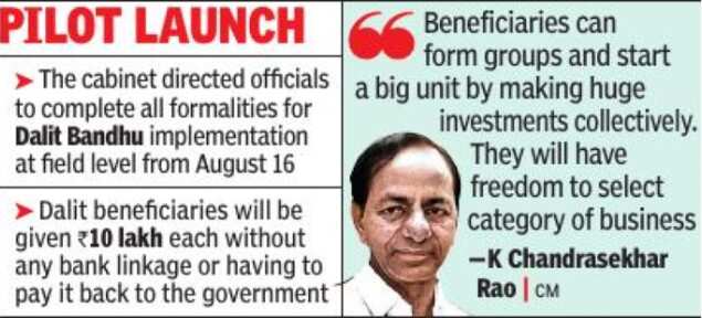 KCR also announced the implementation of the flagship Dalit Bandhu scheme as a pilot project in the poll-bound constituency from August 16.