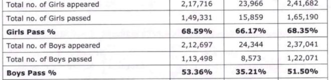 As per the results, first year students, both general and vocational combined, recorded a 60.01 pass percentage. And for second year students, the pass percentage was 64.19. Girls outshone boys in both first (68.35% vs 51.50%) and second (72.53% vs 56.10%) year results.