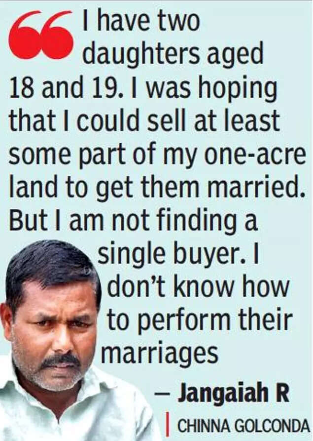 “Since most of the people here are farmers, their only asset is land. But they cannot liquidate it to fund their children's weddings because nobody is willing to buy their land. Reason: It comes under the GO 111 purview. In fact, the few showing interest are quoting very poor rates,” Prabhakar A, a local resident of of Bahadurguda (Shamshabad mandal) told TOI during a recent visit to some remote villages, still untouched by the hectic construction activity visible in other parts of the area.