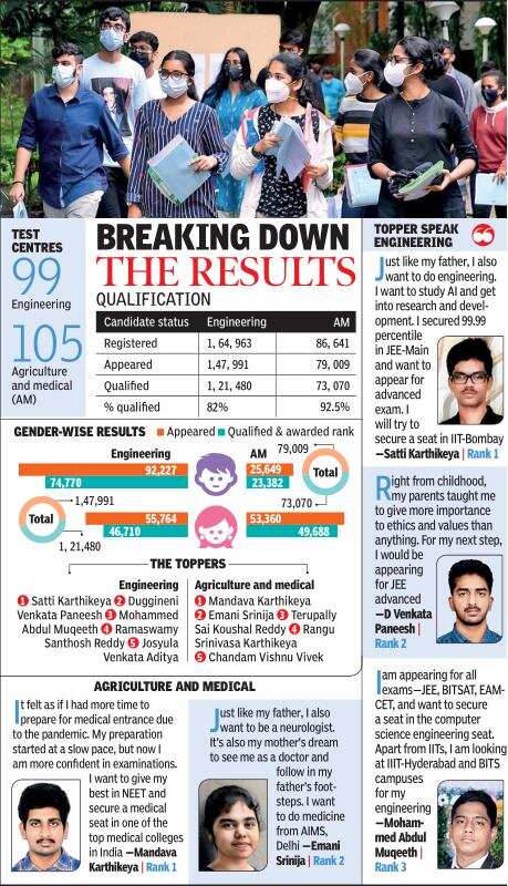 HYDERABAD: Over 43,000 more candidates appeared for the Telangana Engineering Agriculture and Medical Common Entrance Test (TS-Eamcet) this year when compared to 2020. A primary reason: the Covid-19 pandemic, said experts. While many students took the test to keep their options open — as is the case in most years — several others chose Eamcet because they want to stay back in Telangana for their education, given the current situation, experts added.