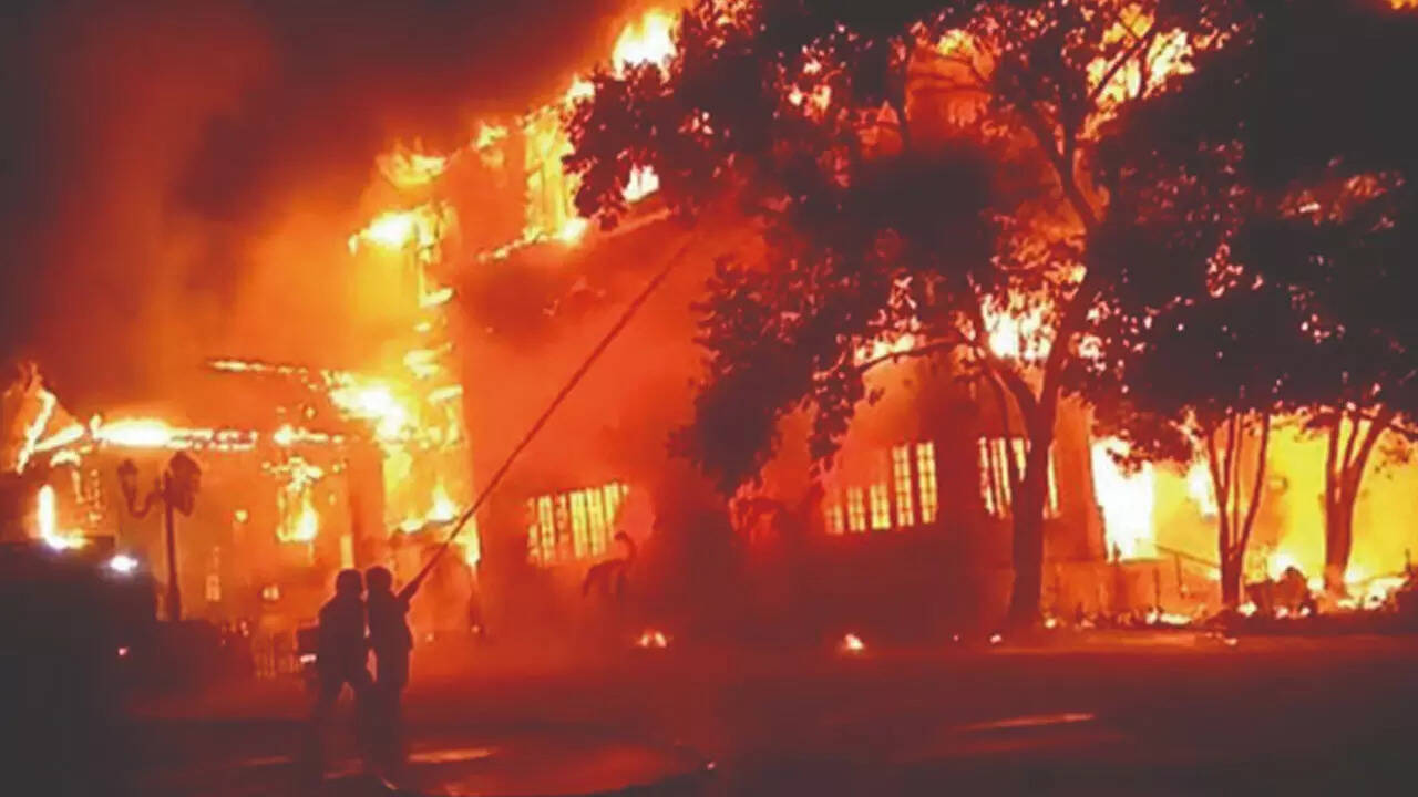 HYDERABAD: A massive pre-dawn fire ravaged the iconic heritage structure of the 144-year-old Secunderabad Club, with fire fighters battling for more than three hours to bring the blaze under control.