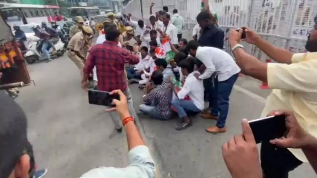 HYDERABAD: Youth Congress members and its state president Shiva Sena Reddy were taken into police custody for trying to barge into Pragati Bhavan, the official residence-cum-camp office of Telangana chief minister K Chandrasekhar Rao.