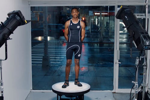 Since starting his eponymous brand in 2005, Telfar Clemens has made it a point to design genderless clothing, as he once explained in an episode of The Breakfast Club. The performance collection debuts with 14 unisex pieces, cohesive in design yet versatile in function. Compression tops and tank tops of various cuts, bandeaus, long-sleeves, and body suits make up the tops, while the bottoms include leggings and two pairs of biker shorts of different lengths. Accessories include a performance hijab as well as leg and arm sleeves.