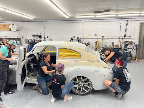 Every time a woman makes her way into a shop and excels, it challenges the assumptions of hiring managers and changes the landscape of the auto industry. “It's difficult to put into words how special this community is,” says Monica Janoff, Girl Gang Garage’s Director of Administration. Janoff discovered Lateiner’s garage only after taking a metalworking and welding class, and then signed up to work on an All-Female Build. “We have ladies who have over 15 years of experience in the trade come to work on the build, as well as ladies who have none,” Janoff adds. “That's the magic that happens here at Girl Gang Garage, and why so many of the women who walk through the doors continue to do so year after year.”