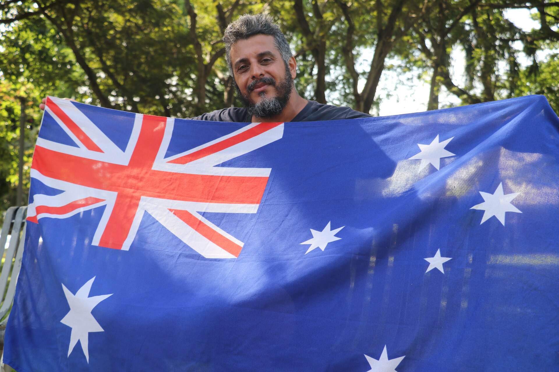 Mr Zannoun now considers Australia home, and carries the Australian flag with him wherever he goes.