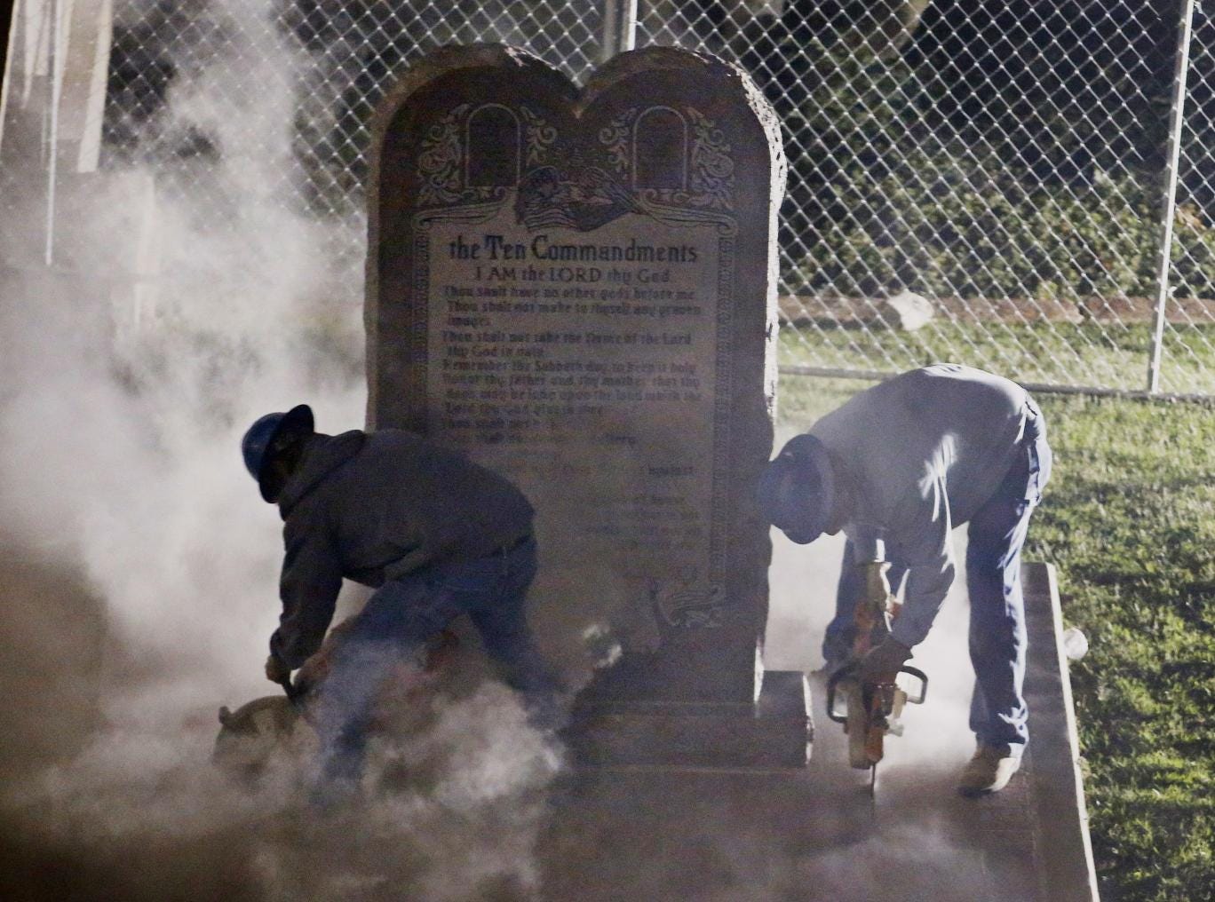 The operation to remove the monument came after a decision taken by the Oklahoma Supreme Court this summer, that it violated state rules that prohibit the use of public property to support "any sect, church, denomination or system of religion."