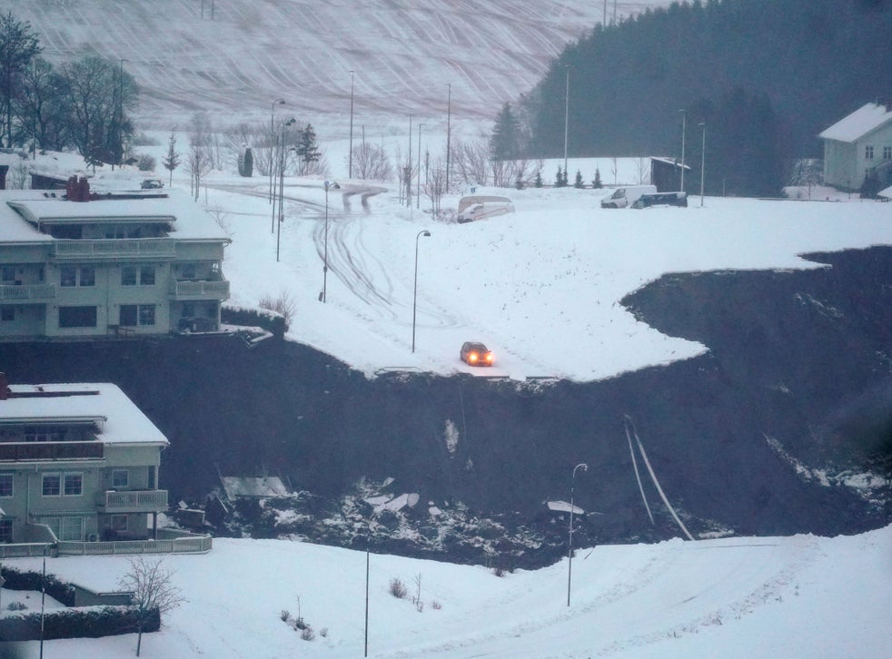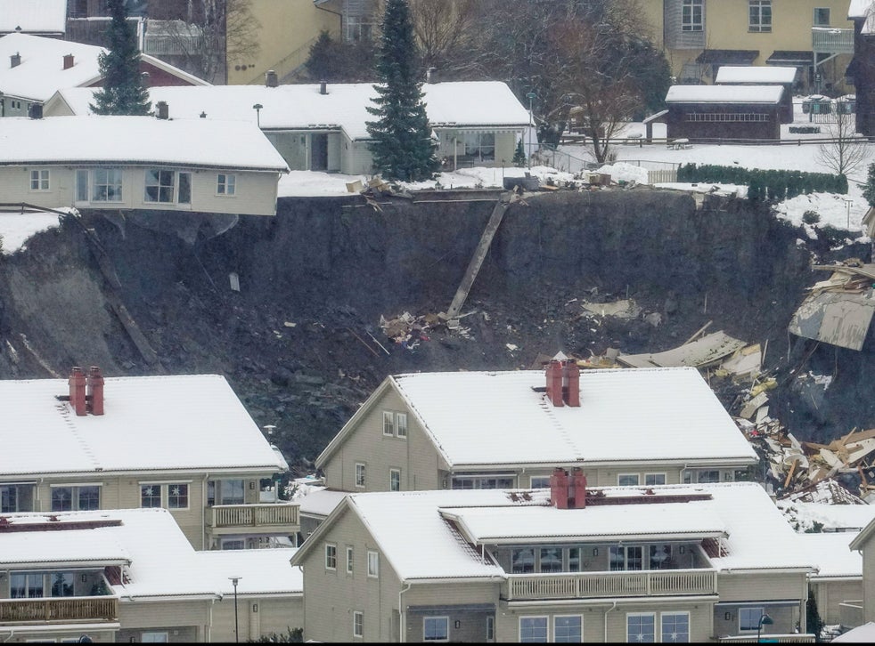 The landslide area is known for its "quick clay", a form of clay that can behave more like a liquid than a solid when disturbed. It is thought heavy rain in recent days may have caused the soil to shift.