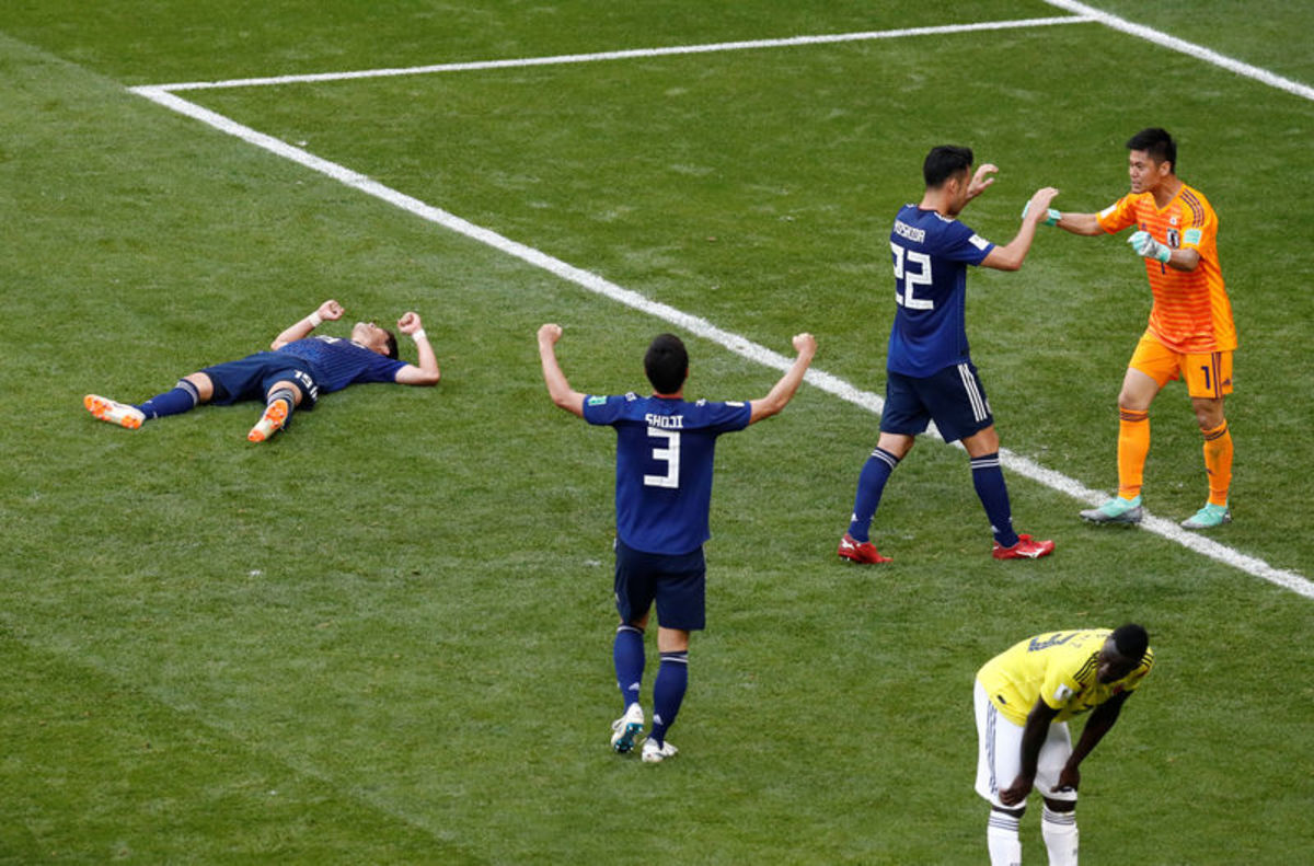 Soccer Football - World Cup - Group H - Colombia vs Japan - Mordovia Arena, Saransk, Russia - June 19, 2018 Japan's Shinji Kagawa scores their first goal from the penalty spot REUTERS/Jason CairnduffSoccer Football - World Cup - Group H - Colombia vs Japan - Mordovia Arena, Saransk, Russia - June 19, 2018 Japan players celebrate after the match REUTERS/Damir SagoljSoccer Football - World Cup - Group H - Colombia vs Japan - Mordovia Arena, Saransk, Russia - June 19, 2018 Japan's Shinji Kagawa celebrates scoring their first goal REUTERS/Damir SagoljSoccer Football - World Cup - Group H - Colombia vs Japan - Mordovia Arena, Saransk, Russia - June 19, 2018 Japan's Shinji Kagawa scores their first goal from the penalty spot REUTERS/Ricardo MoraesSoccer Football - World Cup - Group H - Colombia vs Japan - Mordovia Arena, Saransk, Russia - June 19, 2018 Japan's Shinji Kagawa celebrates scoring their first goal REUTERS/Damir SagoljSoccer Football - World Cup - Group H - Colombia vs Japan - Mordovia Arena, Saransk, Russia - June 19, 2018 Japan's Shinji Kagawa celebrates scoring their first goal with Yuya Osako and Genki Haraguchi REUTERS/Damir SagoljSoccer Football - World Cup - Group H - Colombia vs Japan - Mordovia Arena, Saransk, Russia - June 19, 2018 Japan's Shinji Kagawa celebrates scoring their first goal with team mates REUTERS/Damir SagoljJapan's fans cheer as they watch a broadcast of the World Cup Group H soccer match Colombia vs Japan, at a public viewing event at Tokyo Dome in Tokyo, Japan June 19, 2018. REUTERS/Issei KatoSoccer Football - World Cup - Group H - Colombia vs Japan - Mordovia Arena, Saransk, Russia - June 19, 2018 Japan's Eiji Kawashima concedes a goal scored by Colombia's Juan Fernando Quintero REUTERS/Damir SagoljSoccer Football - World Cup - Group H - Colombia vs Japan - Mordovia Arena, Saransk, Russia - June 19, 2018 Japan's Eiji Kawashima concedes a goal scored by Colombia's Juan Fernando Quintero REUTERS/Damir SagoljSoccer Football - World Cup - Group H - Colombia vs Japan - Mordovia Arena, Saransk, Russia - June 19, 2018 Colombia's Juan Fernando Quintero celebrates scoring their first goal REUTERS/Ricardo MoraesSoccer Football - World Cup - Group H - Colombia vs Japan - Mordovia Arena, Saransk, Russia - June 19, 2018 Colombia's Juan Fernando Quintero celebrates scoring their first goal with team mates REUTERS/Ricardo MoraesSoccer Football - World Cup - Group H - Colombia vs Japan - Mordovia Arena, Saransk, Russia - June 19, 2018 Colombia fans REUTERS/Ricardo MoraesSoccer Football - World Cup - Group H - Colombia vs Japan - Mordovia Arena, Saransk, Russia - June 19, 2018 Japan's Yuya Osako in action with Colombia's David Ospina and Davinson Sanchez REUTERS/Jason CairnduffSoccer Football - World Cup - Group H - Colombia vs Japan - Mordovia Arena, Saransk, Russia - June 19, 2018 Colombia's Carlos Sanchez walks off after being shown a red card by referee Damir Skomina after handling the ball in the penalty area REUTERS/Darren Staples