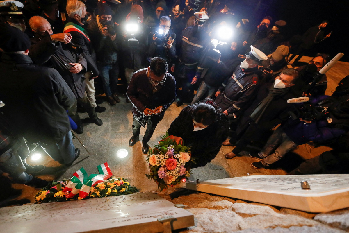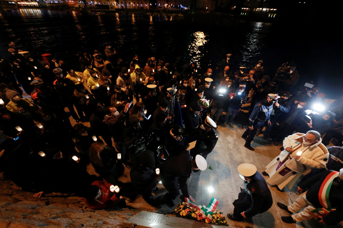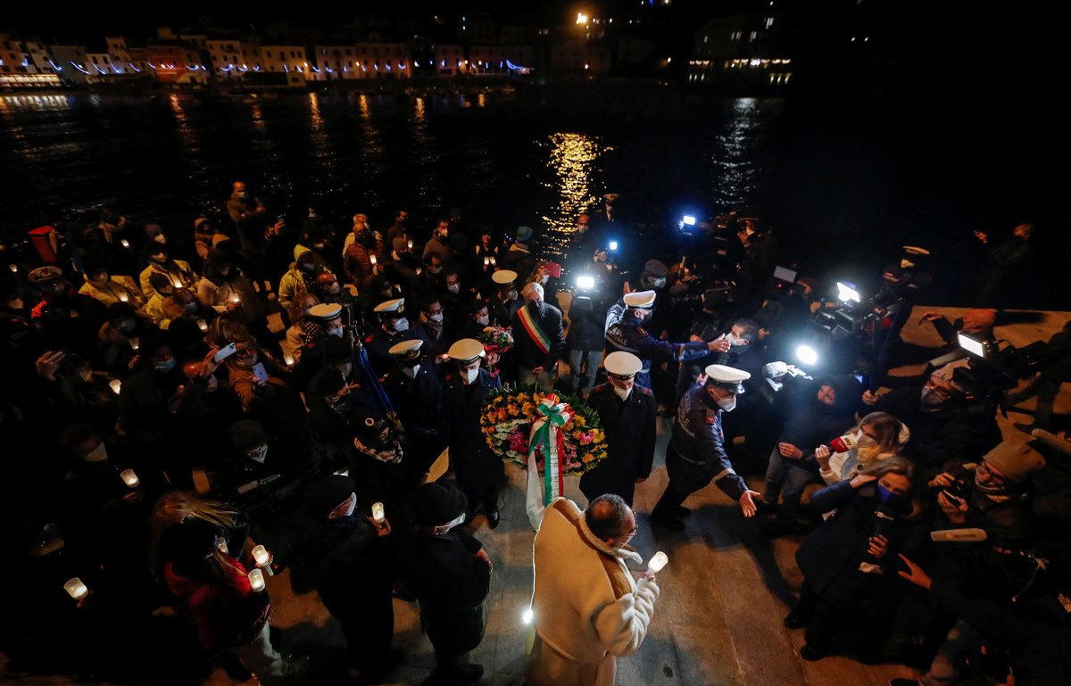 "I am trembling, this is amazing," Rebello said as he entered San Lorenzo church for a memorial Mass with survivors and islanders ahead of a ceremony where flowers were being dropped into the sea.