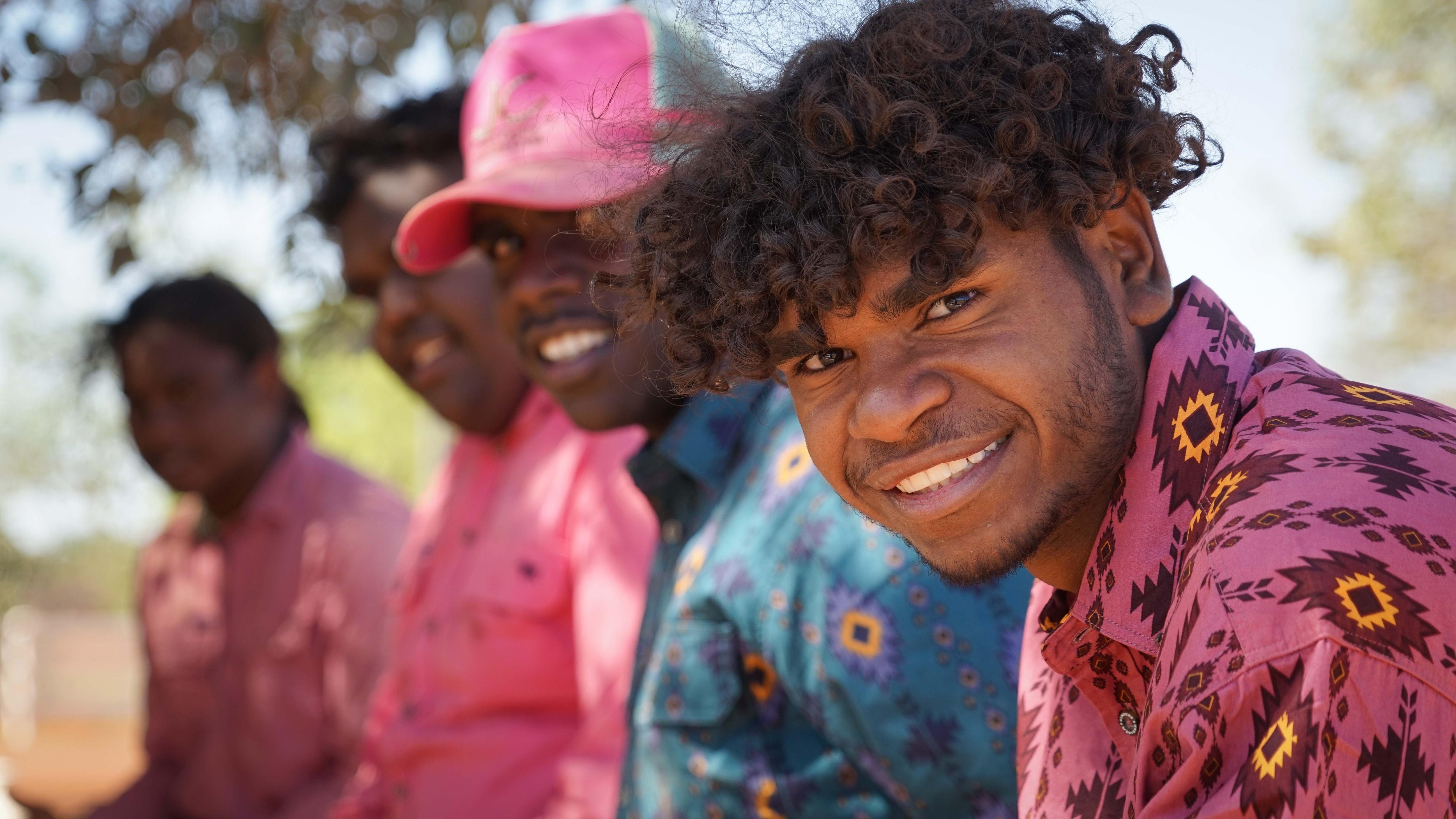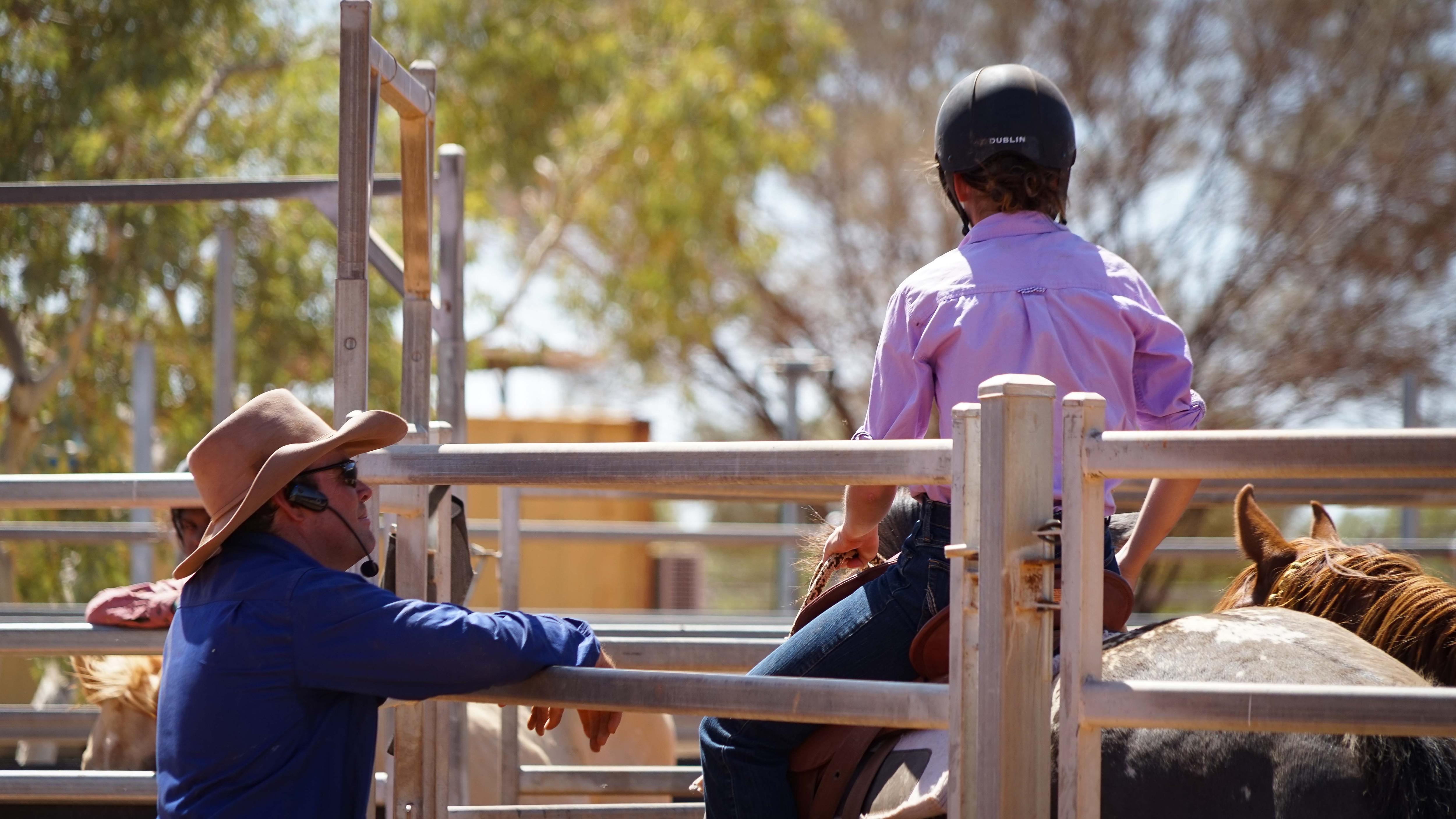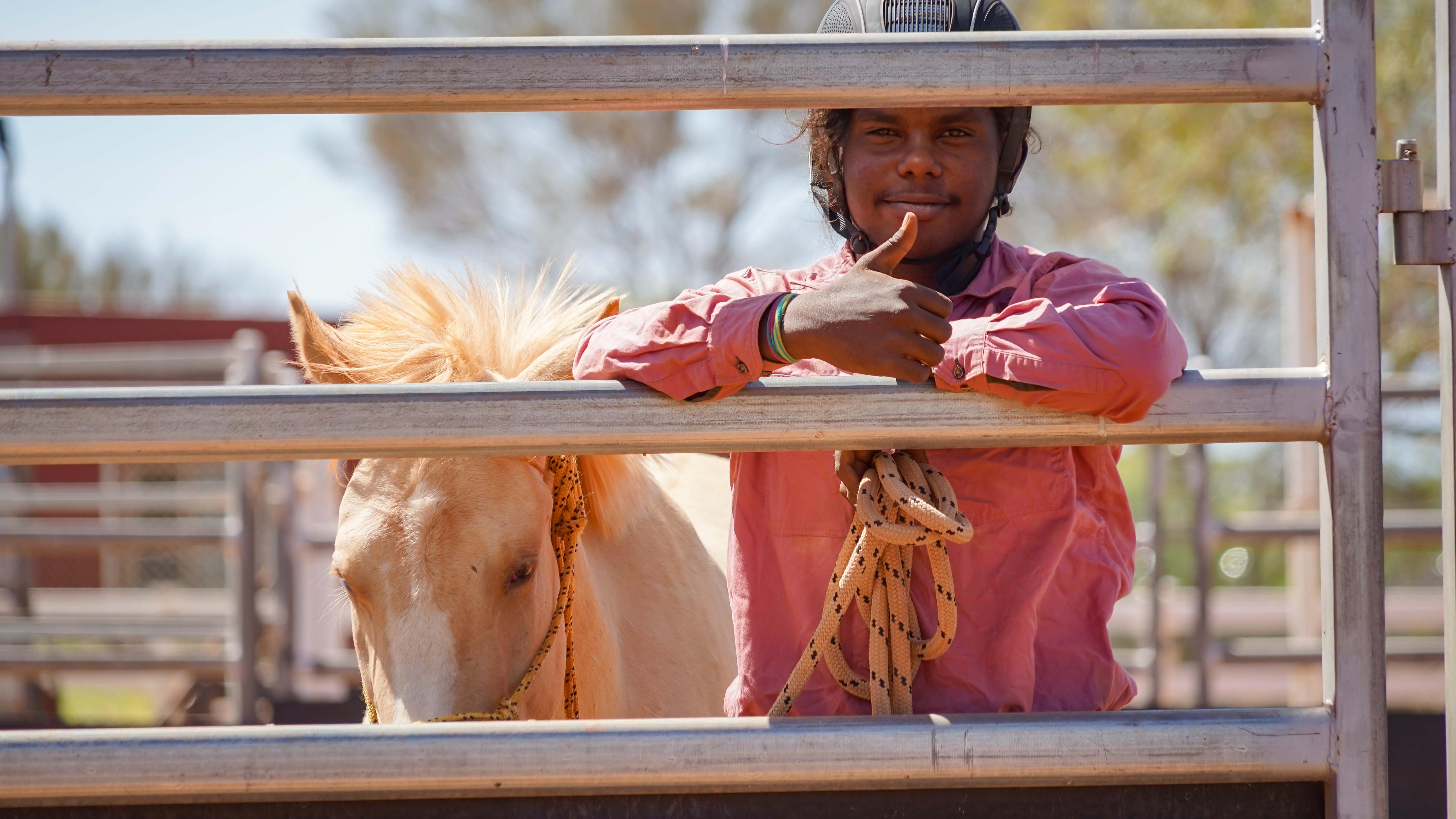 Five of his Tennant Creek high-school mates hang from the railing, watching the silent conversation between man and horse with anticipation.