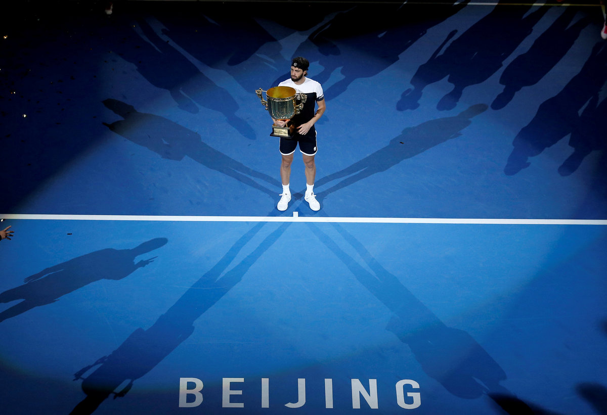 (Reuters) - Nikoloz Basilashvili stunned an off-colour Juan Martin del Potro 6-4 6-4 in the China Open final on Sunday to claim his second trophy of the season.