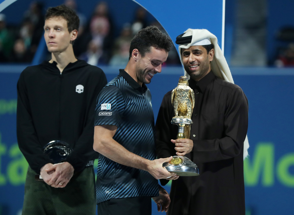 Tennis - Bautista Agut overcomes Berdych to lift Doha trophy
