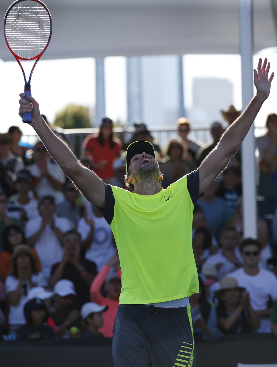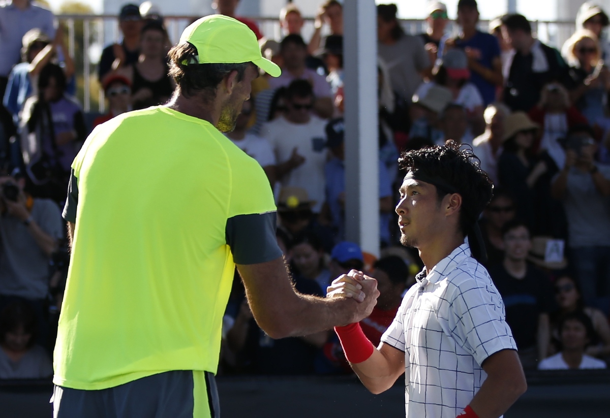 "I'm happy but also very tired," the 2.11m Karlovic, who towered over Sugita, told reporters.