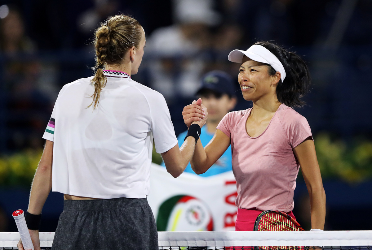 Kvitova, this year's Australian Open runner-up and the champion in Dubai in 2013, switched things up in the second set, stepping up well within the baseline to take time away from Hsieh and rushing to the net behind her own powerful serve.