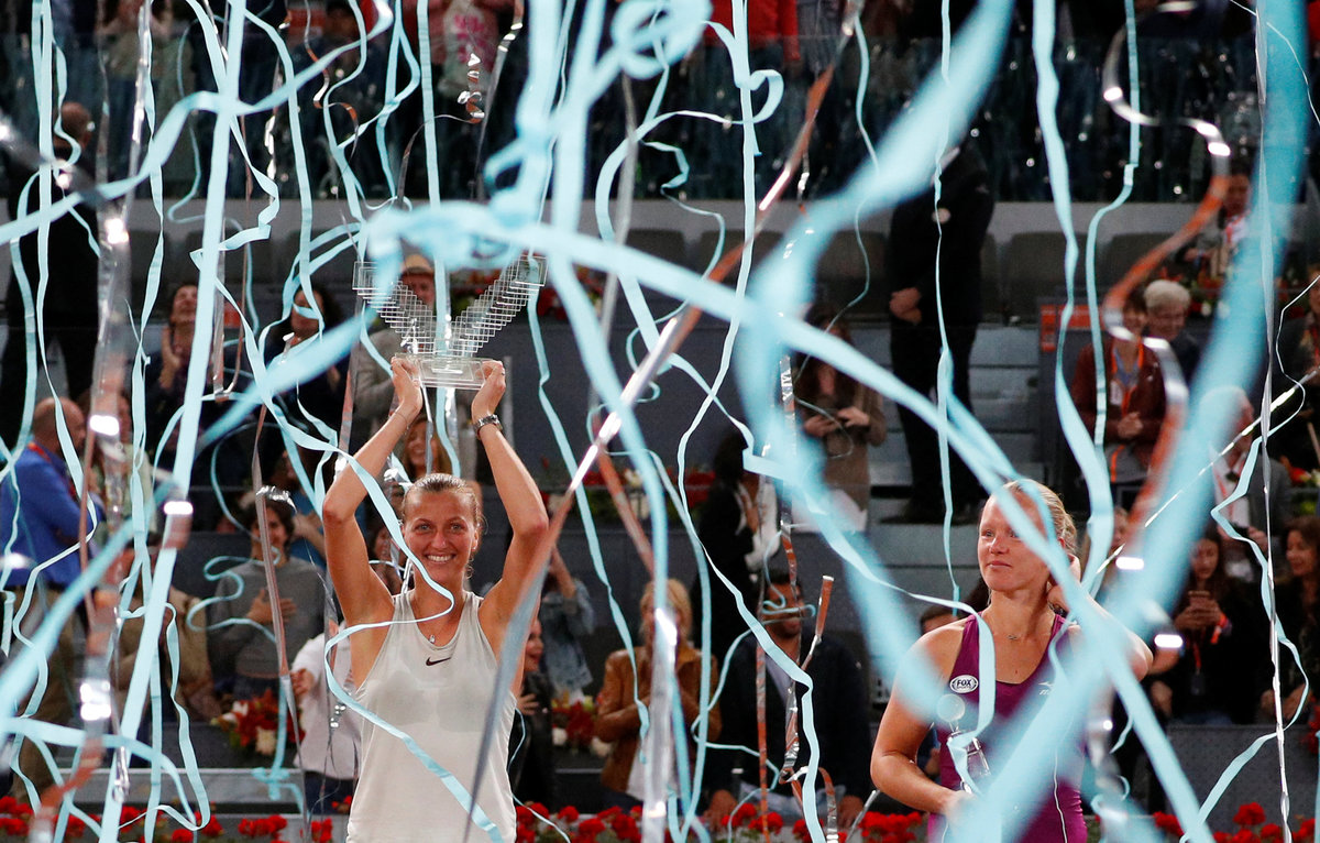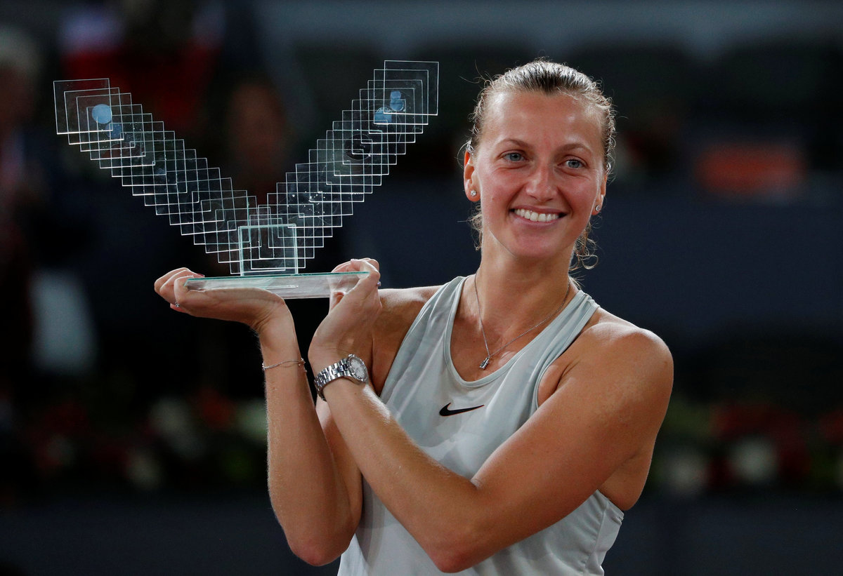 MADRID (Reuters) - Petra Kvitova outlasted the unseeded Kiki Bertens to win a thrilling Madrid Open final on Saturday 7-6(8-6) 4-6 6-3 and become the first player to lift the trophy for a third time.