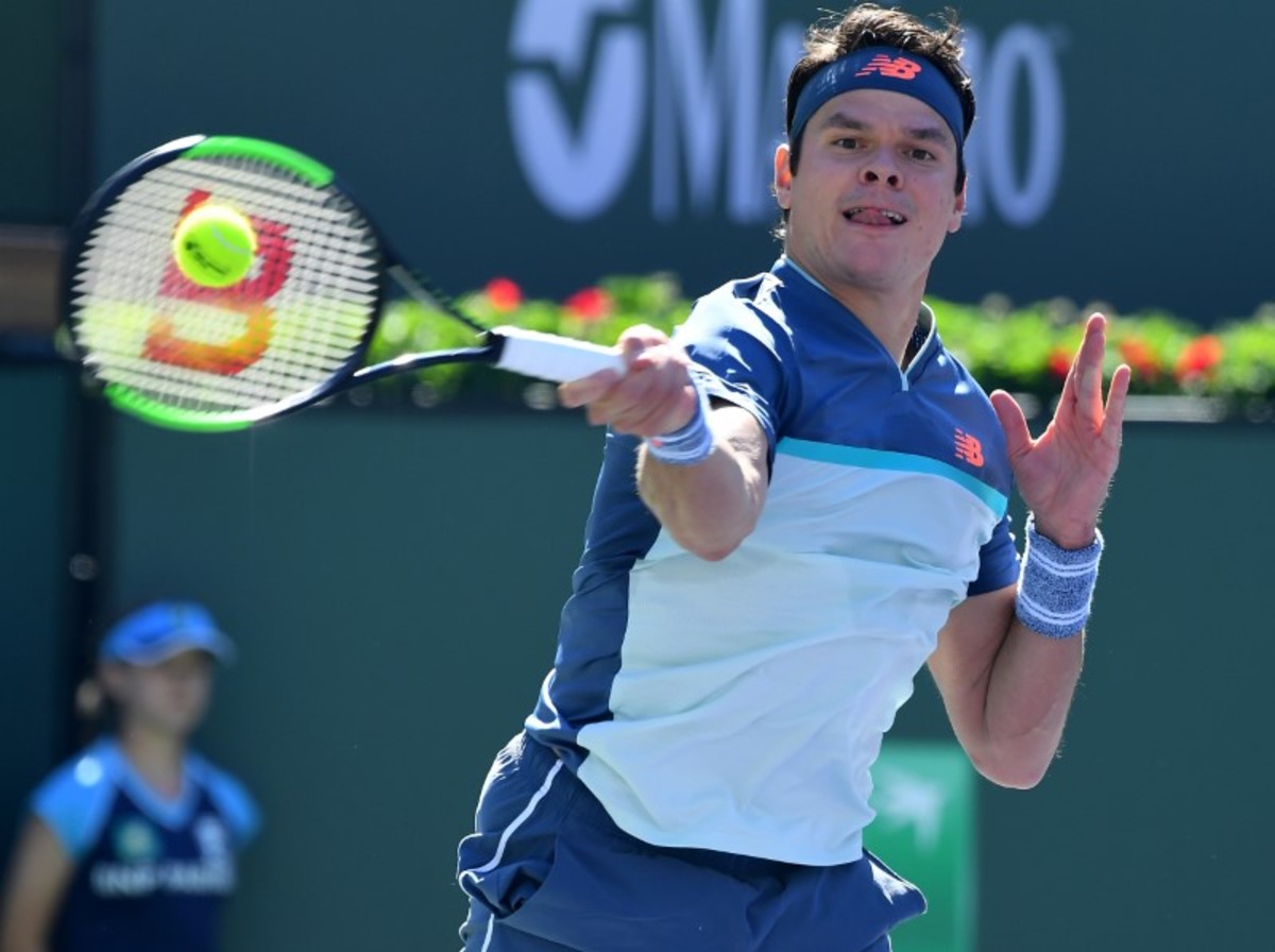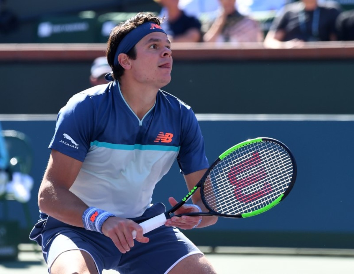 (Reuters) - Canadian Milos Raonic fired down 13 aces to defeat Miomir Kecmanovic 6-3 6-4 and set up a BNP Paribas Open semi-final against Dominic Thiem after the Austrian's opponent, Gael Monfils, withdrew injured before their match on Thursday.