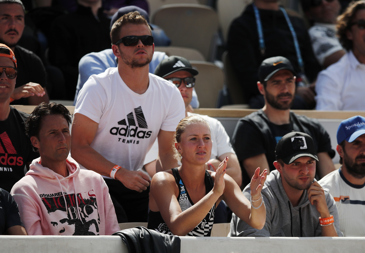 Tennis - French Open - Roland Garros, Paris, France - June 6, 2019. Austria's Dominic Thiem's girlfriend Kristina Mladenovic reacts during his quarterfinal match against Russia's Karen Kachanov. REUTERS/Benoit Tessier