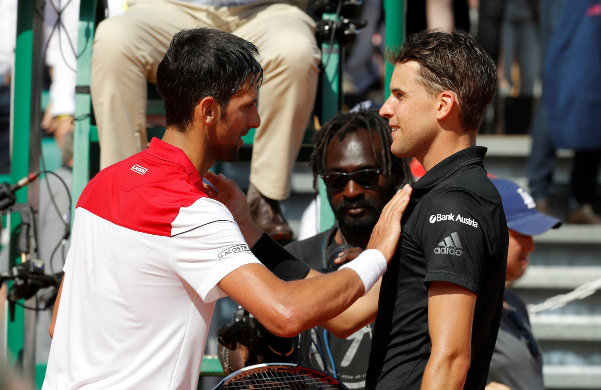 MONTE CARLO (Reuters) - Fifth seed Dominic Thiem came from behind to knock out Novak Djokovic in the Monte Carlo Masters third round on Thursday and set up a quarter-final clash with defending champion Rafa Nadal.