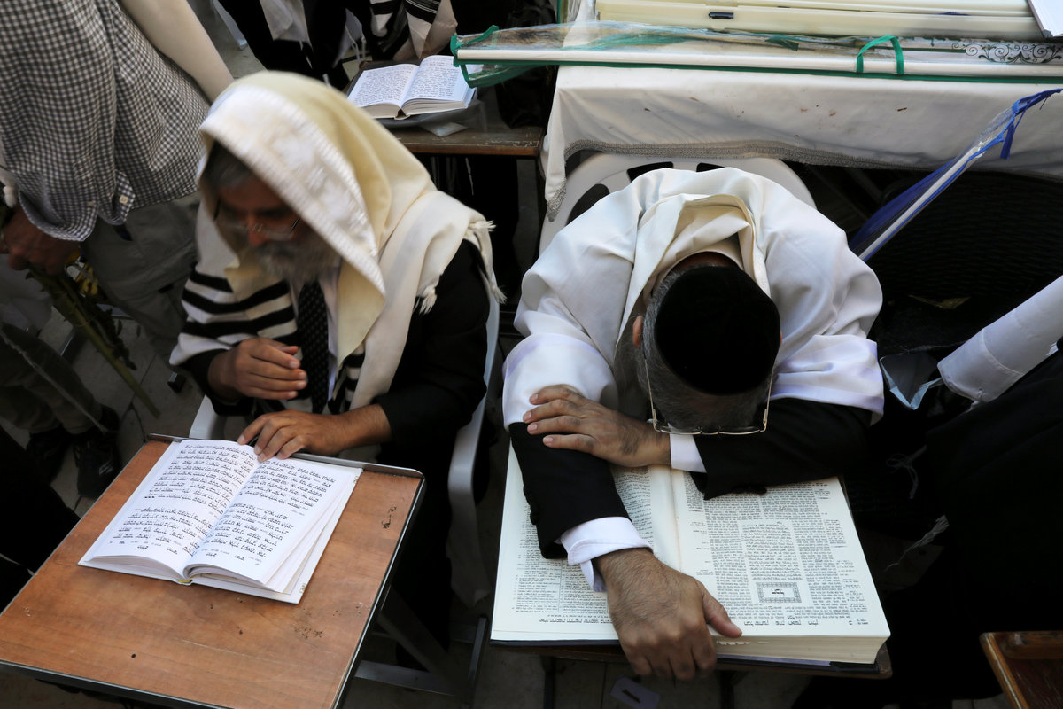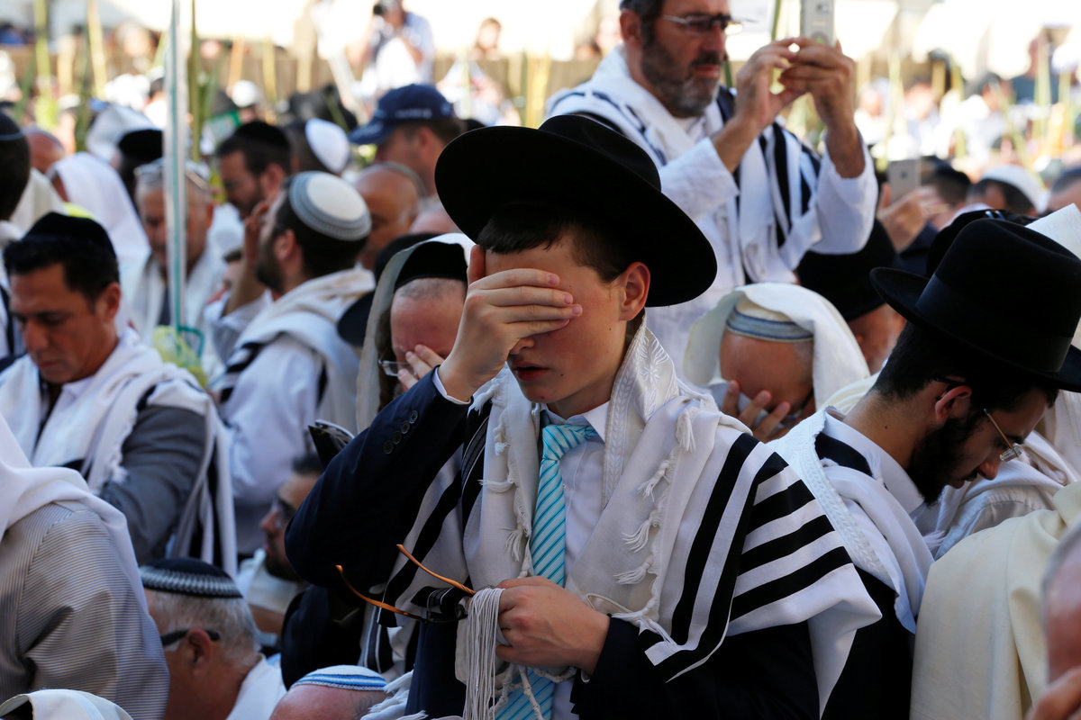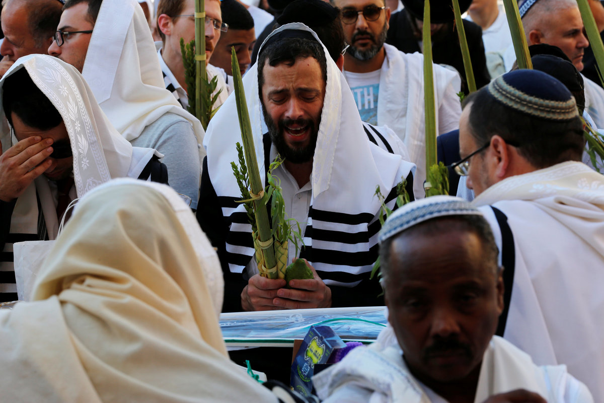 A Jewish worshipper prays during a priestly blessing on the Jewish holiday of Sukkot at the Western Wall in Jerusalem's Old City September 26, 2018. REUTERS/Ammar Awad