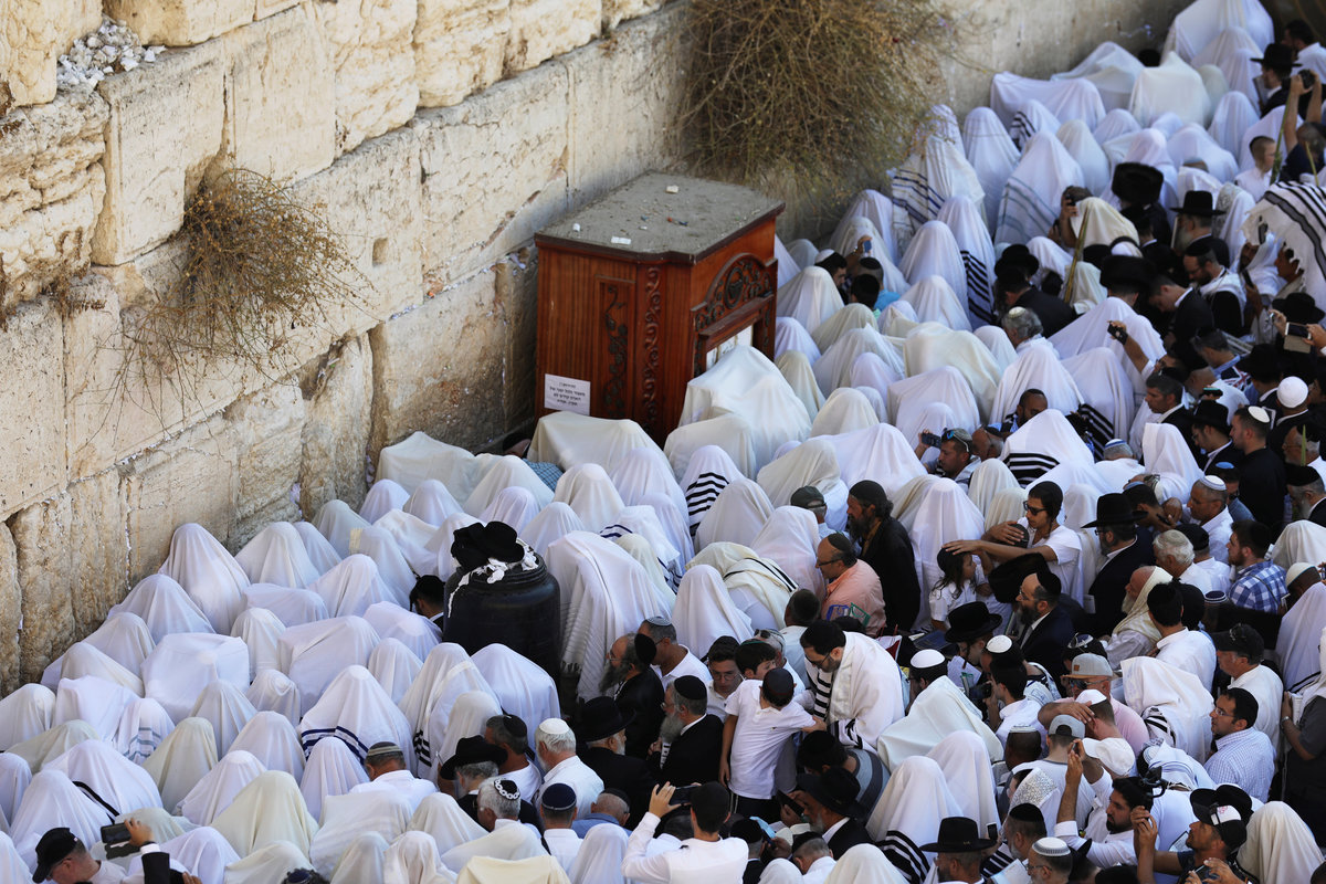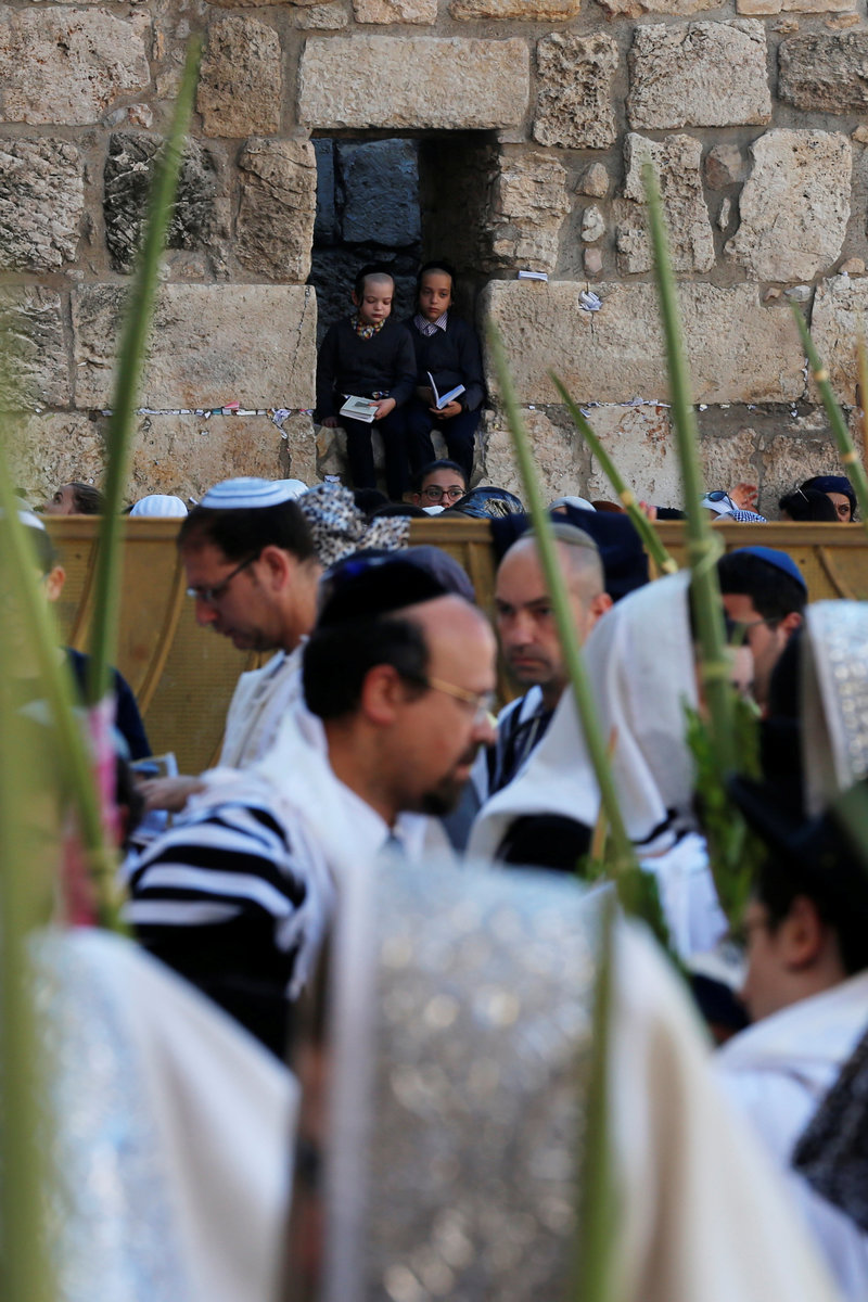 Male and female Jewish worshippers take part in a priestly blessing held on the Jewish holiday of Sukkot at the Western Wall in Jerusalem's Old City September 26, 2018. REUTERS/Ammar Awad