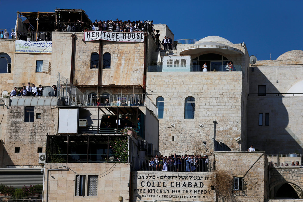 Onlookers watch from balconies as thousands of Jewish worshippers take part in a priestly blessing on the Jewish holiday of Sukkot at the Western Wall in Jerusalem's Old City September 26, 2018. REUTERS/Ammar Awad