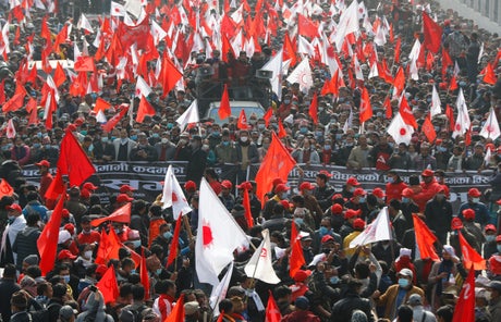 The supporters of a splinter group in the Nepal Communist Party marched peacefully in the center of Kathmandu as they demanded that Prime Minister Khadga Prasad Oli reinstate Parliament.