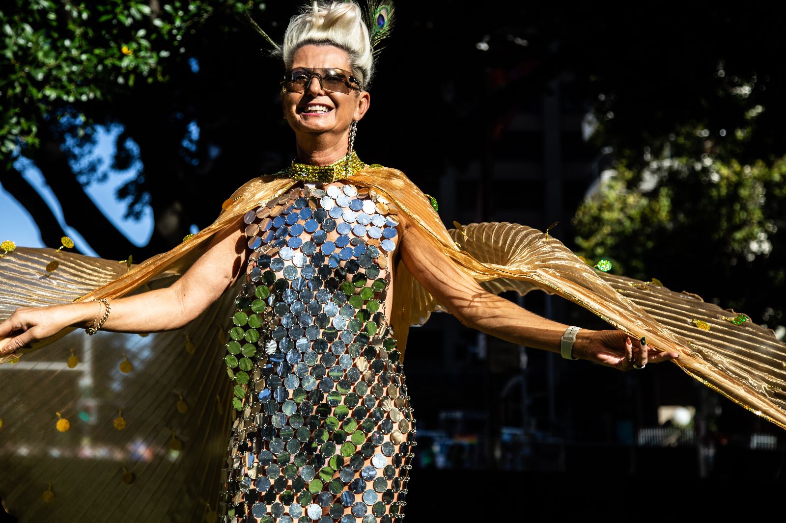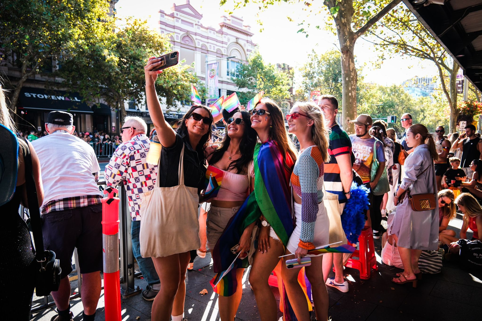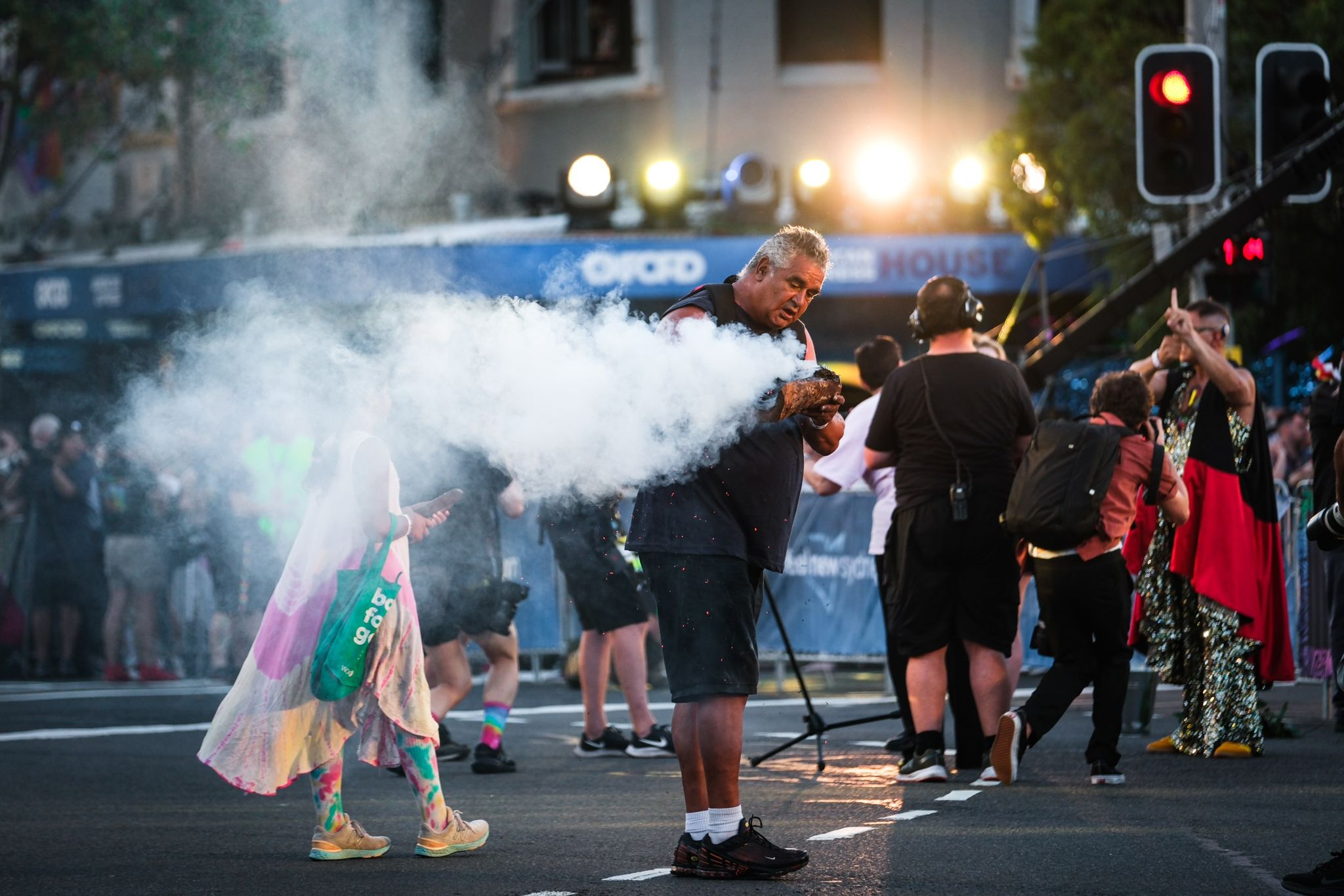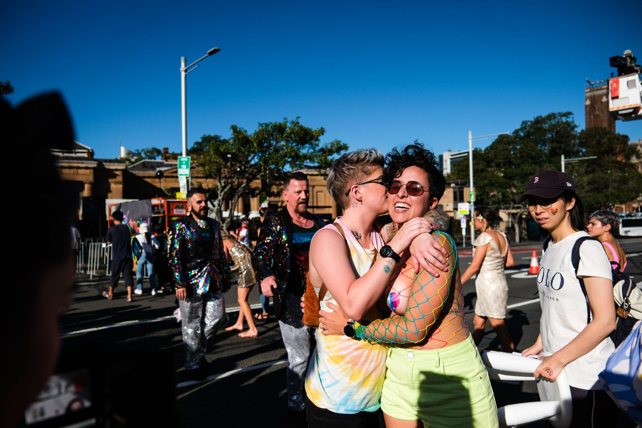 The street and surrounding areas were bursting with colour and party vibes as people jostled from early in the morning for prime viewing spots, two years after COVID-19 forced the event to be relocated to the Sydney Cricket Ground.