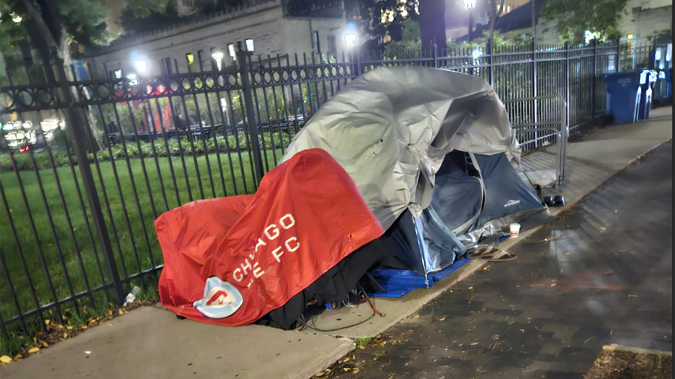 Or a new anomaly: the lone tent pitched directly across the street from Streeterville’s posh Ritz-Carlton hotel’s private residences.