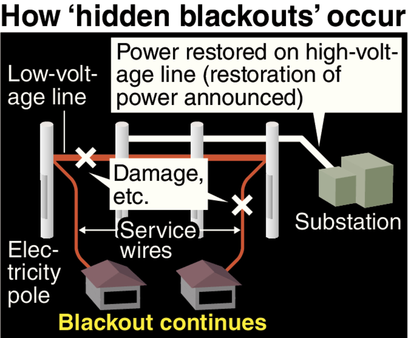 The causes of such cases, referred to as "hidden power failures," include damage to service wires between electricity poles and individual buildings.