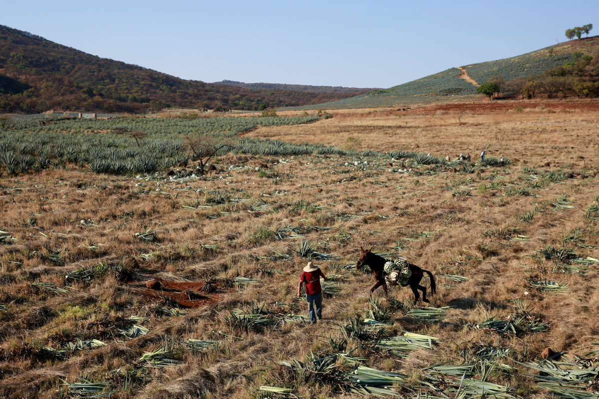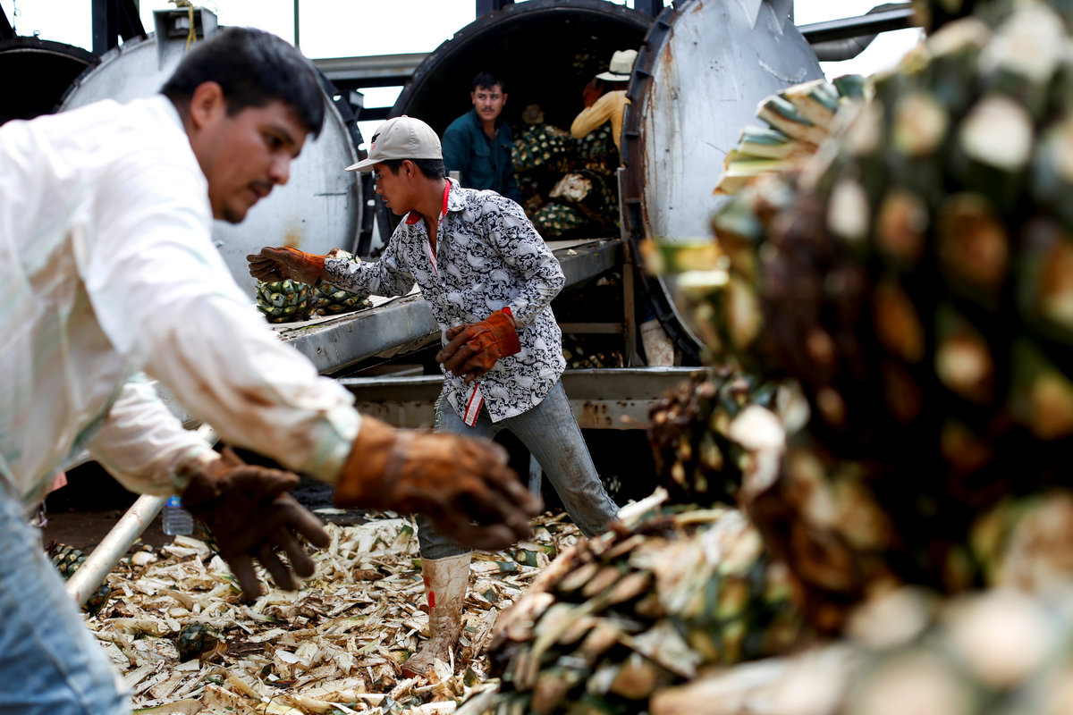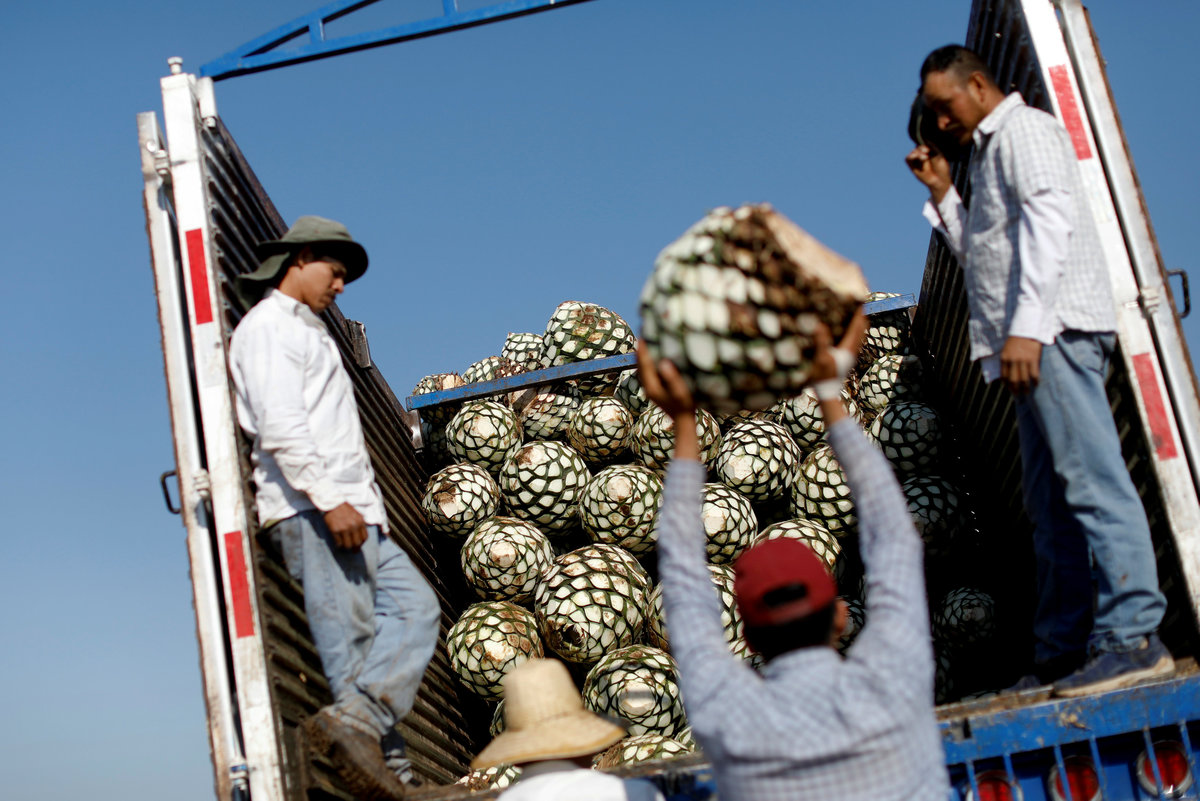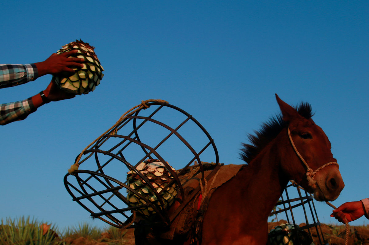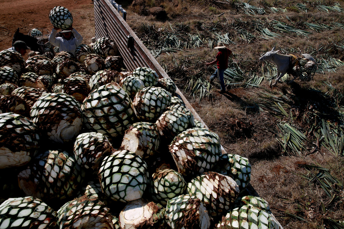Blue agave plantation fields are seen in Tequila, Jalisco, Mexico, September 7, 2017. REUTERS/Carlos Jasso A worker labels bottles of tequila in a factory in Amatitan, Jalisco, Mexico, September 7, 2017. REUTERS/Carlos Jasso A resident watches as the bartender pours tequila for a traditional drink called a "Batanga" at La Capilla bar in Tequila, Jalisco, Mexico, April 11, 2018. REUTERS/Carlos Jasso Mario Perez, 39, a farmer, also known as a jimador, kisses one of his six daughters as he arrives home after a harvest of blue agave in Tequila, Jalisco, Mexico, April 13, 2018. "I am so proud to be a jimador, we are the first in the chain of the tequila industry, without us there is no tequila," Perez said. "In the old days to be a jimador was a respected job, now you are a simple worker. But it is a work of great tradition." REUTERS/Carlos Jasso People walk around the town in Tequila, Jalisco, Mexico, April 10, 2018. REUTERS/Carlos Jasso Jose Luis Flores, an arriero or muleteer rests at his house after a harvest in Tequila, Jalisco, Mexico, April 13, 2018. "I helped my dad for 20 years and I love it," Flores said. "No one can replace us, not even a machine. My mules can get past any cliff or difficult path." He hopes to pass down his trade to his four children. "I think I'm going to buy more mules. This is a family business now," he said. REUTERS/Carlos Jasso Estela de Reinoso, 71, and J. Cruz Reinoso, founders of the Don Blanco distillery, a family tequila business, pose for a photograph at their tequila factory in Tequila, Jalisco, Mexico, April 12, 2018. They've been building up the family business for 30 years. Their daughter and son work with them. "My wife and I had a dream and it came true," said J. Cruz. "Tequila is a good business but it has a lot of demand. I hope the agave lasts for a long time." REUTERS/Carlos Jasso Bottles of tequila and other liquors are seen inside a local bar in Tequila, Jalisco, Mexico, April 10, 2018. REUTERS/Carlos Jasso Baby blue agaves are seen in Amatitan, Jalisco, Mexico, April 10, 2018. REUTERS/Carlos Jasso A mule transports blue agave hearts during a harvest on a plantation in Tepatitlan, Jalisco, Mexico, September 6, 2017. REUTERS/Carlos Jasso An employee works at an oven used to cook agave as J. Cruz Reinoso, founder of the Don Blanco distillery, looks on, in Tequila, Jalisco, Mexico, April 12, 2018. REUTERS/Carlos Jasso Shops of local tequila and distillate of agave are seen in Tequila, Jalisco, Mexico, April 10, 2018. REUTERS/Carlos Jasso Marta Lucia Reinoso, 35, a member of the Don Blanco family tequila business, chats with an employee as she explains the traditional process of grinding cooked agave hearts, in Tequila, Jalisco, Mexico, April 12, 2018. A donkey or a mule pulls a stone mill to grind the agave for its juice, before fermentation and after distillation. REUTERS/Carlos Jasso Barrels of tequila are stored in a factory in Amatitan, Jalisco, Mexico, September 7, 2017. REUTERS/Carlos Jasso Farmers, also known as jimadores, eat their lunch under a tree as they take a break, during a blue agave harvest on a plantation in Tequila, Jalisco, Mexico, April 13, 2018. REUTERS/Carlos Jasso Blue agave hearts are seen beside a truck after a harvest on a plantation in Tequila, Jalisco, Mexico, April 11, 2018. REUTERS/Carlos Jasso A blue agave plantation is seen in Tepatitlan, Jalisco, Mexico, September 7, 2017. REUTERS/Carlos Jasso. Estela de Reinoso, 71, a founder of the Don Blanco family tequila business, works at the factory in Tequila, Jalisco, Mexico, April 12, 2018. REUTERS/Carlos Jasso A worker separates agave fibres at the El Chorrito tequila factory in Tequila, Jalisco, Mexico, April 10, 2018. REUTERS/Carlos Jasso Workers load blue agave hearts into an oven for distillation to make tequila at a factory in Amatitan, Jalisco, Mexico, September 7, 2017. REUTERS/Carlos Jasso A tourist car in the shape of a tequila barrel is seen on a street in Tequila, Jalisco, Mexico, April 11, 2018. REUTERS/Carlos Jasso Farmer, Efrain Sanchez, 60, looks at a baby blue agave which will be replanted in another plantation to give it more room to grow, in Tepatitlan, Jalisco, Mexico, April 10, 2018. REUTERS/Carlos Jasso A child plays inside an old car on a street in Tequila, Jalisco, Mexico, April 11, 2018. REUTERS/Carlos Jasso Jose Luis Flores, an arriero or muleteer drives his mule loaded with blue agave hearts, during a harvest on a plantation in Tequila, Jalisco, Mexico, April 13, 2018. REUTERS/Carlos Jasso A farmer, also known as a jimador, carries a blue agave heart during a harvest in Tequila, Jalisco, Mexico, April 13, 2018. REUTERS/Carlos Jasso Farmers, also known as jimadores, load blue agave hearts onto a truck after a harvest on a plantation in Tequila, Jalisco, Mexico, April 13, 2018. REUTERS/Carlos Jasso