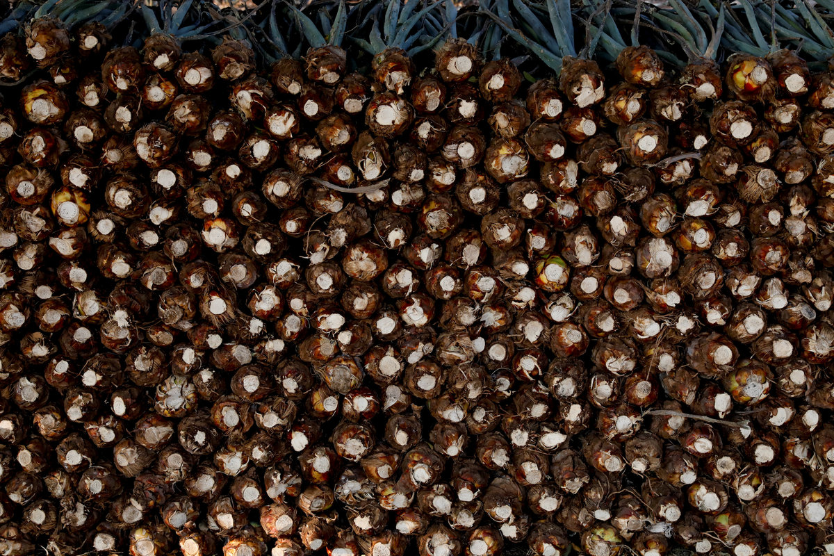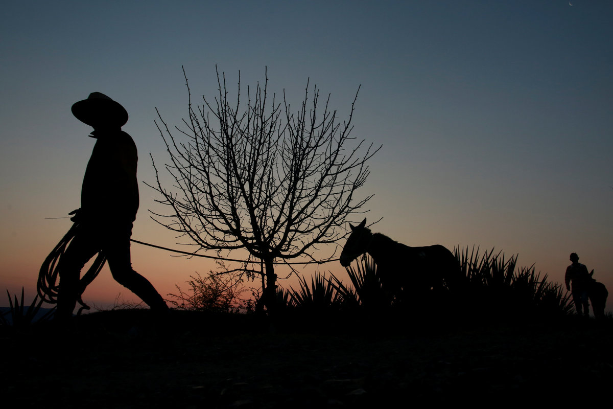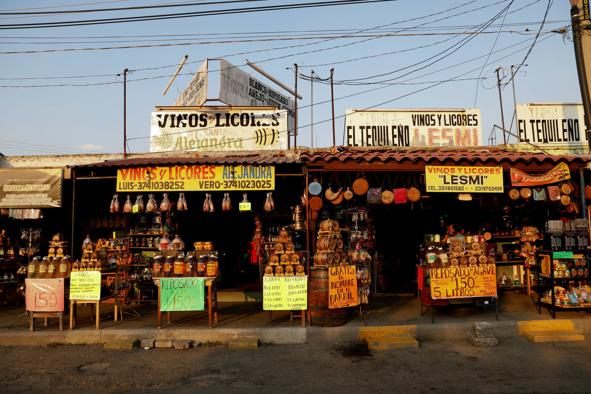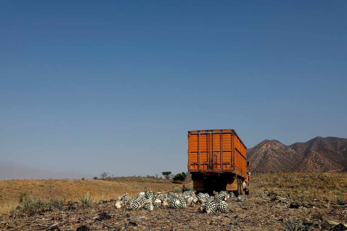 Blue agave plantation fields are seen in Tequila, Jalisco, Mexico, September 7, 2017. REUTERS/Carlos Jasso A worker labels bottles of tequila in a factory in Amatitan, Jalisco, Mexico, September 7, 2017. REUTERS/Carlos Jasso A resident watches as the bartender pours tequila for a traditional drink called a "Batanga" at La Capilla bar in Tequila, Jalisco, Mexico, April 11, 2018. REUTERS/Carlos Jasso Mario Perez, 39, a farmer, also known as a jimador, kisses one of his six daughters as he arrives home after a harvest of blue agave in Tequila, Jalisco, Mexico, April 13, 2018. "I am so proud to be a jimador, we are the first in the chain of the tequila industry, without us there is no tequila," Perez said. "In the old days to be a jimador was a respected job, now you are a simple worker. But it is a work of great tradition." REUTERS/Carlos Jasso People walk around the town in Tequila, Jalisco, Mexico, April 10, 2018. REUTERS/Carlos Jasso Jose Luis Flores, an arriero or muleteer rests at his house after a harvest in Tequila, Jalisco, Mexico, April 13, 2018. "I helped my dad for 20 years and I love it," Flores said. "No one can replace us, not even a machine. My mules can get past any cliff or difficult path." He hopes to pass down his trade to his four children. "I think I'm going to buy more mules. This is a family business now," he said. REUTERS/Carlos Jasso Estela de Reinoso, 71, and J. Cruz Reinoso, founders of the Don Blanco distillery, a family tequila business, pose for a photograph at their tequila factory in Tequila, Jalisco, Mexico, April 12, 2018. They've been building up the family business for 30 years. Their daughter and son work with them. "My wife and I had a dream and it came true," said J. Cruz. "Tequila is a good business but it has a lot of demand. I hope the agave lasts for a long time." REUTERS/Carlos Jasso Bottles of tequila and other liquors are seen inside a local bar in Tequila, Jalisco, Mexico, April 10, 2018. REUTERS/Carlos Jasso Baby blue agaves are seen in Amatitan, Jalisco, Mexico, April 10, 2018. REUTERS/Carlos Jasso A mule transports blue agave hearts during a harvest on a plantation in Tepatitlan, Jalisco, Mexico, September 6, 2017. REUTERS/Carlos Jasso An employee works at an oven used to cook agave as J. Cruz Reinoso, founder of the Don Blanco distillery, looks on, in Tequila, Jalisco, Mexico, April 12, 2018. REUTERS/Carlos Jasso Shops of local tequila and distillate of agave are seen in Tequila, Jalisco, Mexico, April 10, 2018. REUTERS/Carlos Jasso Marta Lucia Reinoso, 35, a member of the Don Blanco family tequila business, chats with an employee as she explains the traditional process of grinding cooked agave hearts, in Tequila, Jalisco, Mexico, April 12, 2018. A donkey or a mule pulls a stone mill to grind the agave for its juice, before fermentation and after distillation. REUTERS/Carlos Jasso Barrels of tequila are stored in a factory in Amatitan, Jalisco, Mexico, September 7, 2017. REUTERS/Carlos Jasso Farmers, also known as jimadores, eat their lunch under a tree as they take a break, during a blue agave harvest on a plantation in Tequila, Jalisco, Mexico, April 13, 2018. REUTERS/Carlos Jasso Blue agave hearts are seen beside a truck after a harvest on a plantation in Tequila, Jalisco, Mexico, April 11, 2018. REUTERS/Carlos Jasso A blue agave plantation is seen in Tepatitlan, Jalisco, Mexico, September 7, 2017. REUTERS/Carlos Jasso. Estela de Reinoso, 71, a founder of the Don Blanco family tequila business, works at the factory in Tequila, Jalisco, Mexico, April 12, 2018. REUTERS/Carlos Jasso A worker separates agave fibres at the El Chorrito tequila factory in Tequila, Jalisco, Mexico, April 10, 2018. REUTERS/Carlos Jasso Workers load blue agave hearts into an oven for distillation to make tequila at a factory in Amatitan, Jalisco, Mexico, September 7, 2017. REUTERS/Carlos Jasso A tourist car in the shape of a tequila barrel is seen on a street in Tequila, Jalisco, Mexico, April 11, 2018. REUTERS/Carlos Jasso Farmer, Efrain Sanchez, 60, looks at a baby blue agave which will be replanted in another plantation to give it more room to grow, in Tepatitlan, Jalisco, Mexico, April 10, 2018. REUTERS/Carlos Jasso A child plays inside an old car on a street in Tequila, Jalisco, Mexico, April 11, 2018. REUTERS/Carlos Jasso Jose Luis Flores, an arriero or muleteer drives his mule loaded with blue agave hearts, during a harvest on a plantation in Tequila, Jalisco, Mexico, April 13, 2018. REUTERS/Carlos Jasso A farmer, also known as a jimador, carries a blue agave heart during a harvest in Tequila, Jalisco, Mexico, April 13, 2018. REUTERS/Carlos Jasso Farmers, also known as jimadores, load blue agave hearts onto a truck after a harvest on a plantation in Tequila, Jalisco, Mexico, April 13, 2018. REUTERS/Carlos Jasso