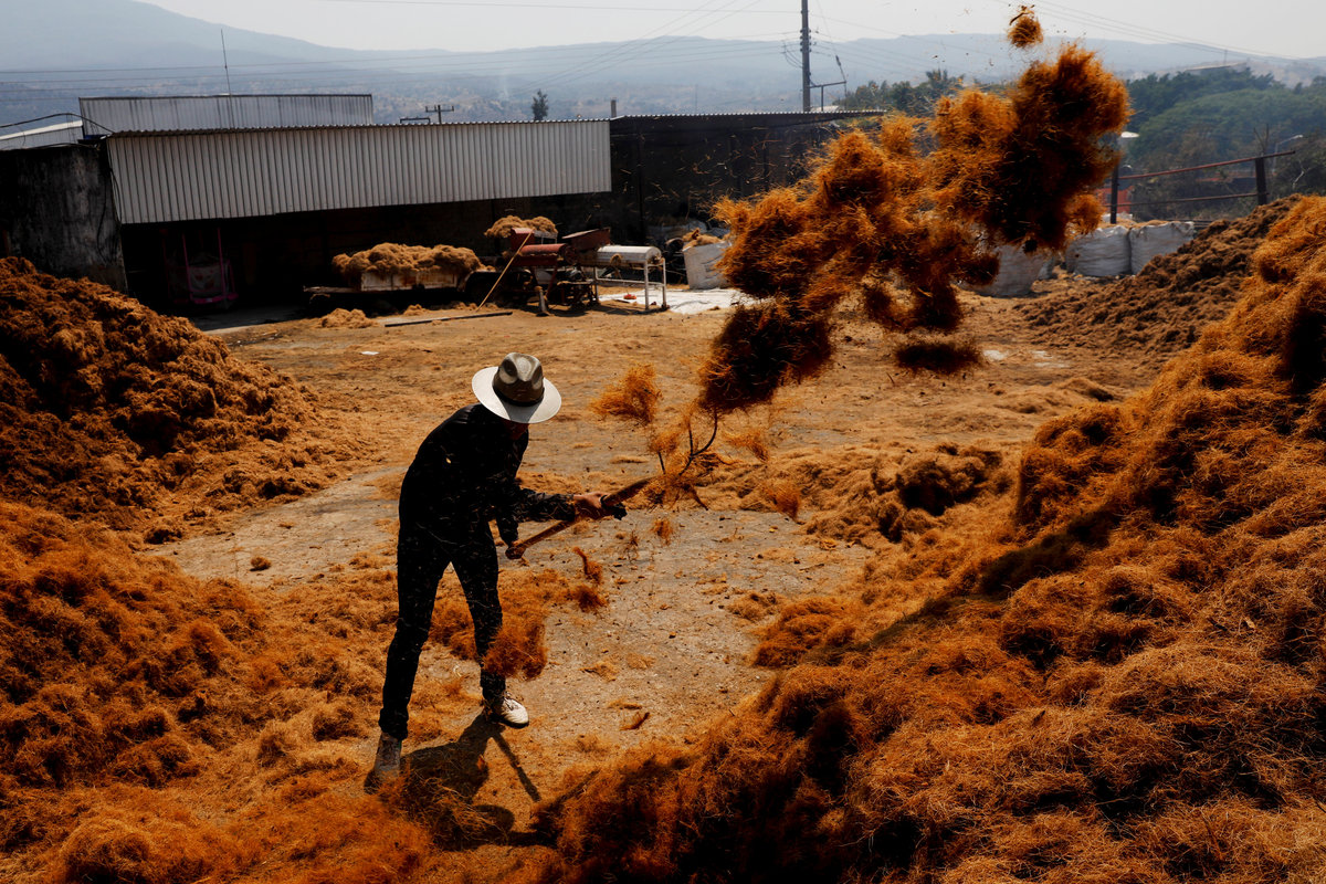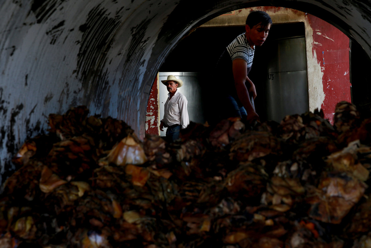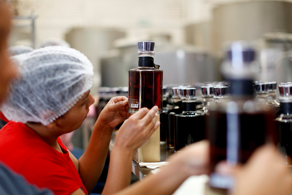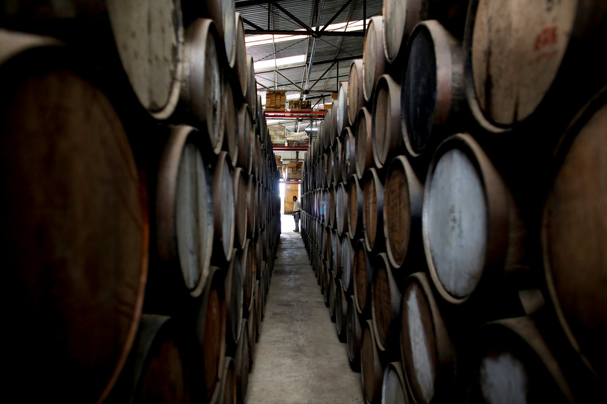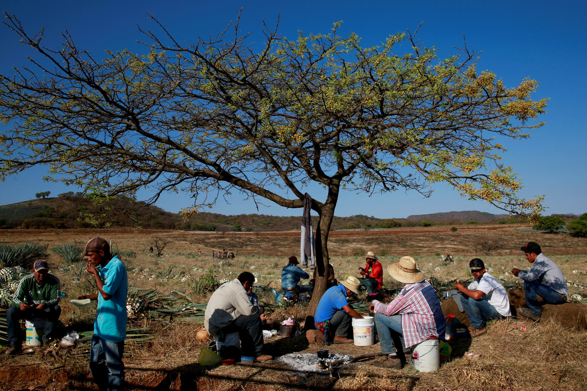 Blue agave plantation fields are seen in Tequila, Jalisco, Mexico, September 7, 2017. REUTERS/Carlos Jasso A worker labels bottles of tequila in a factory in Amatitan, Jalisco, Mexico, September 7, 2017. REUTERS/Carlos Jasso A resident watches as the bartender pours tequila for a traditional drink called a "Batanga" at La Capilla bar in Tequila, Jalisco, Mexico, April 11, 2018. REUTERS/Carlos Jasso Mario Perez, 39, a farmer, also known as a jimador, kisses one of his six daughters as he arrives home after a harvest of blue agave in Tequila, Jalisco, Mexico, April 13, 2018. "I am so proud to be a jimador, we are the first in the chain of the tequila industry, without us there is no tequila," Perez said. "In the old days to be a jimador was a respected job, now you are a simple worker. But it is a work of great tradition." REUTERS/Carlos Jasso People walk around the town in Tequila, Jalisco, Mexico, April 10, 2018. REUTERS/Carlos Jasso Jose Luis Flores, an arriero or muleteer rests at his house after a harvest in Tequila, Jalisco, Mexico, April 13, 2018. "I helped my dad for 20 years and I love it," Flores said. "No one can replace us, not even a machine. My mules can get past any cliff or difficult path." He hopes to pass down his trade to his four children. "I think I'm going to buy more mules. This is a family business now," he said. REUTERS/Carlos Jasso Estela de Reinoso, 71, and J. Cruz Reinoso, founders of the Don Blanco distillery, a family tequila business, pose for a photograph at their tequila factory in Tequila, Jalisco, Mexico, April 12, 2018. They've been building up the family business for 30 years. Their daughter and son work with them. "My wife and I had a dream and it came true," said J. Cruz. "Tequila is a good business but it has a lot of demand. I hope the agave lasts for a long time." REUTERS/Carlos Jasso Bottles of tequila and other liquors are seen inside a local bar in Tequila, Jalisco, Mexico, April 10, 2018. REUTERS/Carlos Jasso Baby blue agaves are seen in Amatitan, Jalisco, Mexico, April 10, 2018. REUTERS/Carlos Jasso A mule transports blue agave hearts during a harvest on a plantation in Tepatitlan, Jalisco, Mexico, September 6, 2017. REUTERS/Carlos Jasso An employee works at an oven used to cook agave as J. Cruz Reinoso, founder of the Don Blanco distillery, looks on, in Tequila, Jalisco, Mexico, April 12, 2018. REUTERS/Carlos Jasso Shops of local tequila and distillate of agave are seen in Tequila, Jalisco, Mexico, April 10, 2018. REUTERS/Carlos Jasso Marta Lucia Reinoso, 35, a member of the Don Blanco family tequila business, chats with an employee as she explains the traditional process of grinding cooked agave hearts, in Tequila, Jalisco, Mexico, April 12, 2018. A donkey or a mule pulls a stone mill to grind the agave for its juice, before fermentation and after distillation. REUTERS/Carlos Jasso Barrels of tequila are stored in a factory in Amatitan, Jalisco, Mexico, September 7, 2017. REUTERS/Carlos Jasso Farmers, also known as jimadores, eat their lunch under a tree as they take a break, during a blue agave harvest on a plantation in Tequila, Jalisco, Mexico, April 13, 2018. REUTERS/Carlos Jasso Blue agave hearts are seen beside a truck after a harvest on a plantation in Tequila, Jalisco, Mexico, April 11, 2018. REUTERS/Carlos Jasso A blue agave plantation is seen in Tepatitlan, Jalisco, Mexico, September 7, 2017. REUTERS/Carlos Jasso. Estela de Reinoso, 71, a founder of the Don Blanco family tequila business, works at the factory in Tequila, Jalisco, Mexico, April 12, 2018. REUTERS/Carlos Jasso A worker separates agave fibres at the El Chorrito tequila factory in Tequila, Jalisco, Mexico, April 10, 2018. REUTERS/Carlos Jasso Workers load blue agave hearts into an oven for distillation to make tequila at a factory in Amatitan, Jalisco, Mexico, September 7, 2017. REUTERS/Carlos Jasso A tourist car in the shape of a tequila barrel is seen on a street in Tequila, Jalisco, Mexico, April 11, 2018. REUTERS/Carlos Jasso Farmer, Efrain Sanchez, 60, looks at a baby blue agave which will be replanted in another plantation to give it more room to grow, in Tepatitlan, Jalisco, Mexico, April 10, 2018. REUTERS/Carlos Jasso A child plays inside an old car on a street in Tequila, Jalisco, Mexico, April 11, 2018. REUTERS/Carlos Jasso Jose Luis Flores, an arriero or muleteer drives his mule loaded with blue agave hearts, during a harvest on a plantation in Tequila, Jalisco, Mexico, April 13, 2018. REUTERS/Carlos Jasso A farmer, also known as a jimador, carries a blue agave heart during a harvest in Tequila, Jalisco, Mexico, April 13, 2018. REUTERS/Carlos Jasso Farmers, also known as jimadores, load blue agave hearts onto a truck after a harvest on a plantation in Tequila, Jalisco, Mexico, April 13, 2018. REUTERS/Carlos Jasso