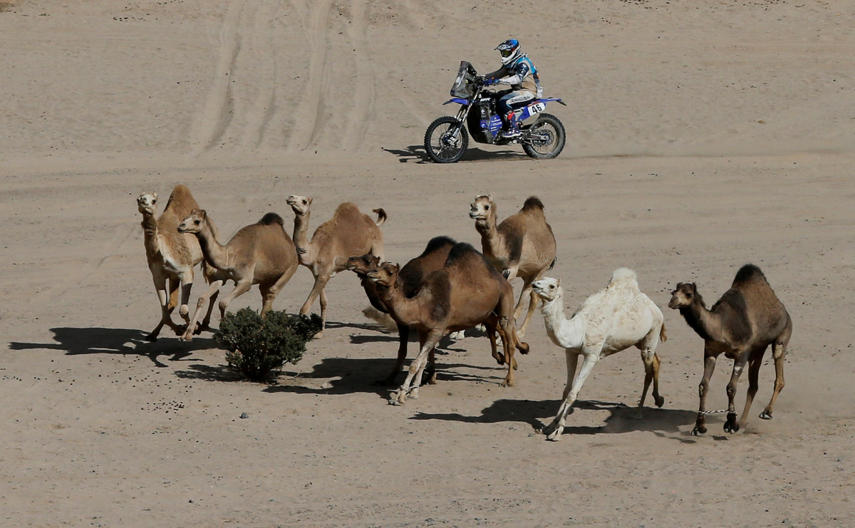 Rallying - Dakar Rally - Stage 2 - Al Wajh - Neom, Saudi Arabia - January 6, 2020 X-Raid Mini JCW Team car driven by Orlando Terranova and Bernardo Graue in action during stage two REUTERS/Hamad I MohammedRallying - Dakar Rally - Stage 2 - Al Wajh - Neom, Saudi Arabia - January 6, 2020 Toyota Gazoo Racing car driven by Bernhard Ten Brinke and Tom Colsoul in action during stage two REUTERS/Hamad I MohammedRallying - Dakar Rally - Stage 2 - Al Wajh - Neom, Saudi Arabia - January 6, 2020 HT Rally Raid Husqvarna Racing's Mirjam Pol rides past a camel herd during stage two REUTERS/Hamad I MohammedRallying - Dakar Rally - Stage 2 - Al Wajh - Neom, Saudi Arabia - January 6, 2020 Paco Gomez's Mauricio Javier Gomez rides past a camel herd during stage two REUTERS/Hamad I MohammedRallying - Dakar Rally - Stage 2 - Al Wajh - Neom, Saudi Arabia - January 6, 2020 Monster Energy Yamaha Rally Team's Adrien Van Beveren in action during stage two REUTERS/Hamad I MohammedRallying - Dakar Rally - Stage 2 - Al Wajh - Neom, Saudi Arabia - January 6, 2020 Inbank Team Pitlane car driven by Benediktas Vanagas and Filipe Palmeiro in action during stage two REUTERS/Hamad I MohammedRallying - Dakar Rally - Stage 2 - Al Wajh - Neom, Saudi Arabia - January 6, 2020 Rockstar Energy Husqvarna Factory Racing's Pablo Quintanilla in action during stage two REUTERS/Hamad I Mohammed