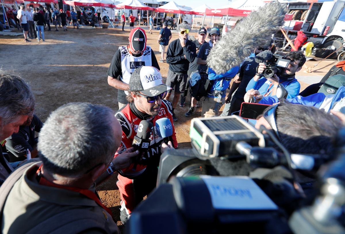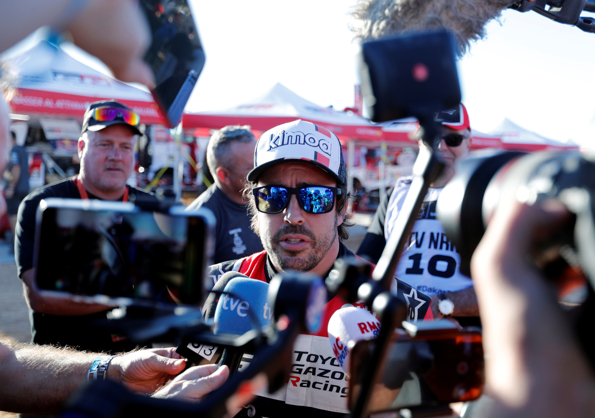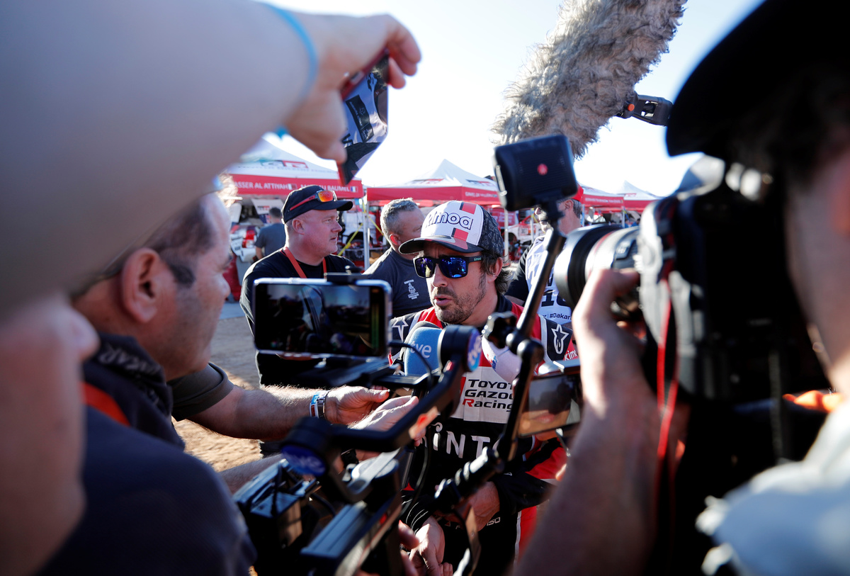 Rallying - Dakar Rally - Stage 2 - Al Wajh - Neom, Saudi Arabia - January 6, 2020 Toyota Gazoo Racing's Fernando Alonso speaks to the press after completing stage two REUTERS/Hamad I Mohammed