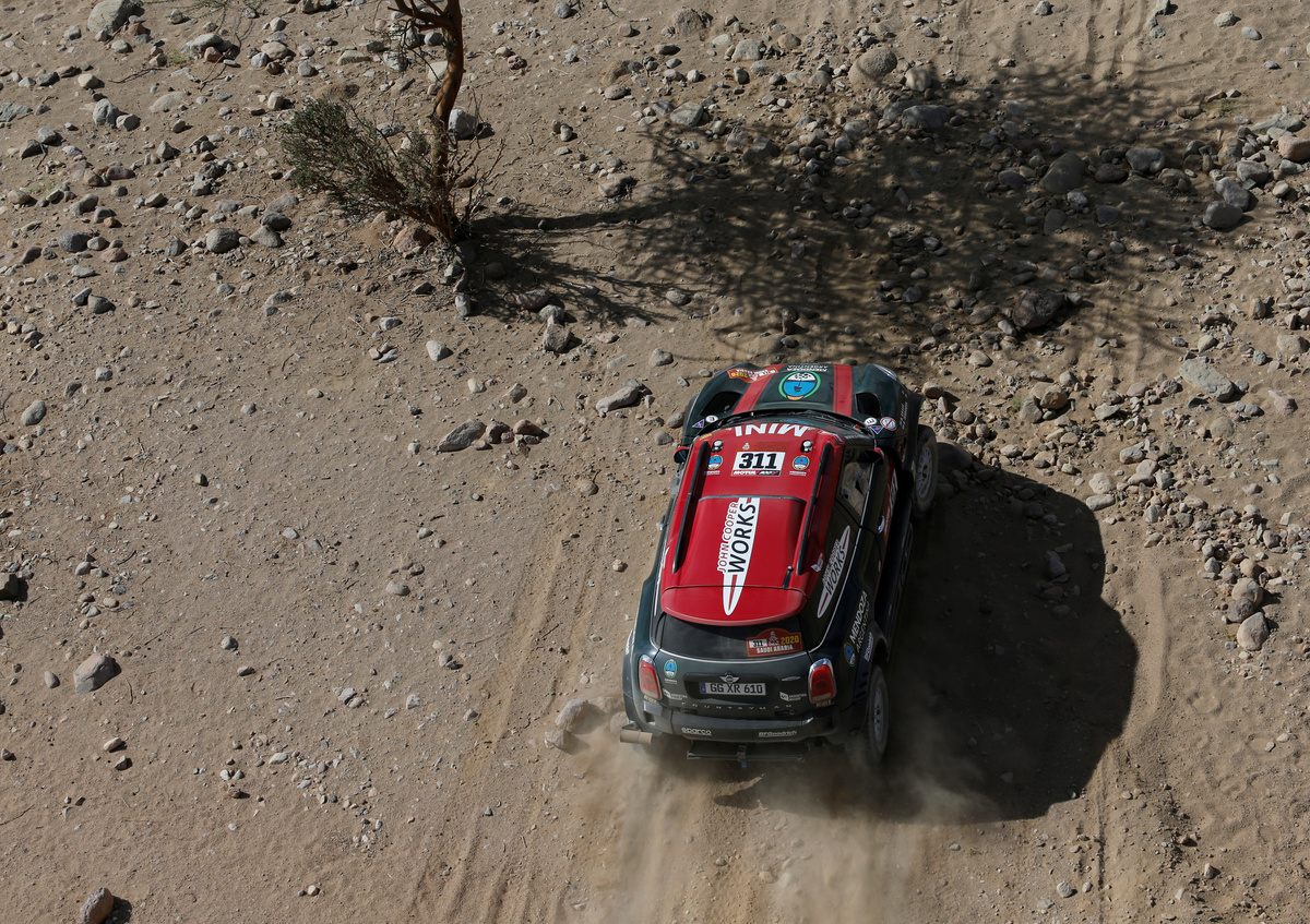 France's 13-times Dakar winner Stephane Peterhansel dropped to eighth place in his Mini buggy.