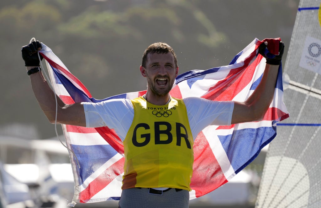 Sir Ben Ainslie congratulated Giles Scott on retaining his Finn class gold.