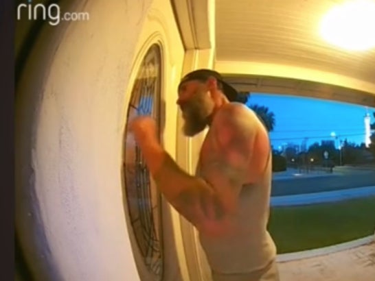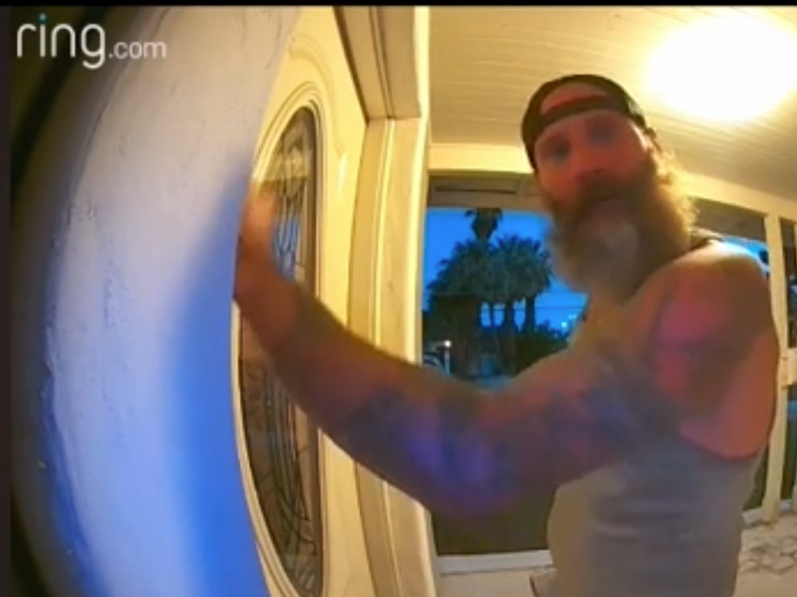 The disturbing video captured a bearded man persistently knocking on the homeowner’s door and repeatedly asking: