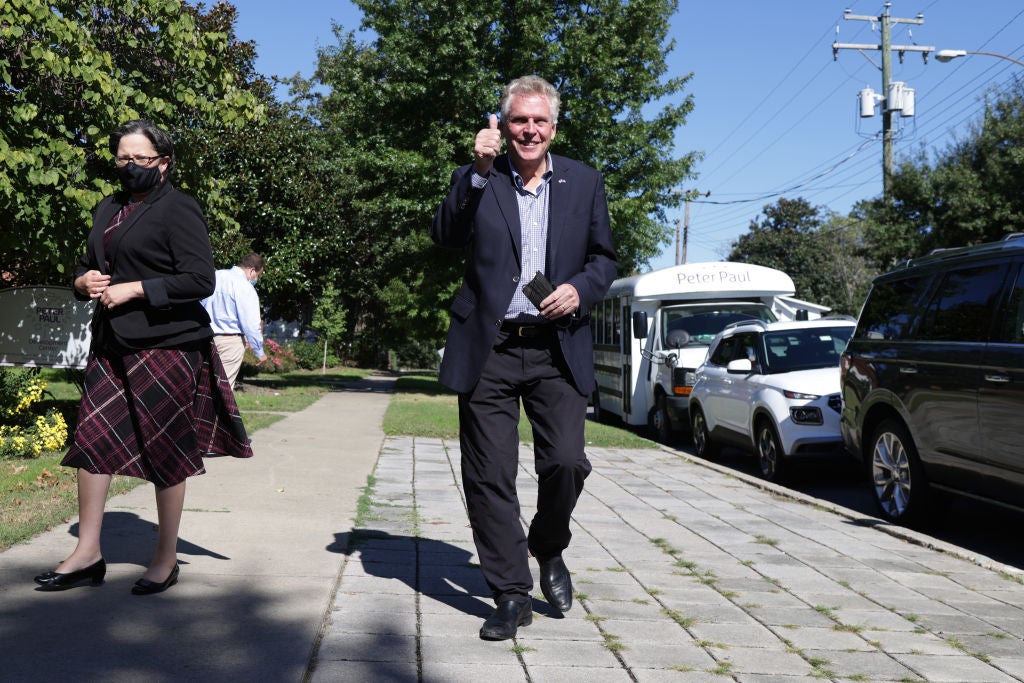 “Glenn Youngkin’s priorities are clear: he is running for governor to bring Donald Trump’s dangerous conspiracy theories to Virginia,” said Mr McAuliffe earlier this month.