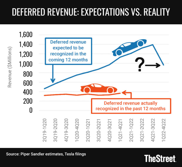 Tesla said last week in a Securities and Exchange Commission filing that it now expected $962 million in deferred revenue this year. That includes revenue activity related to the access to its supercharger network, internet connectivity, full-self-driving features and over-the-air software updates on automotive.