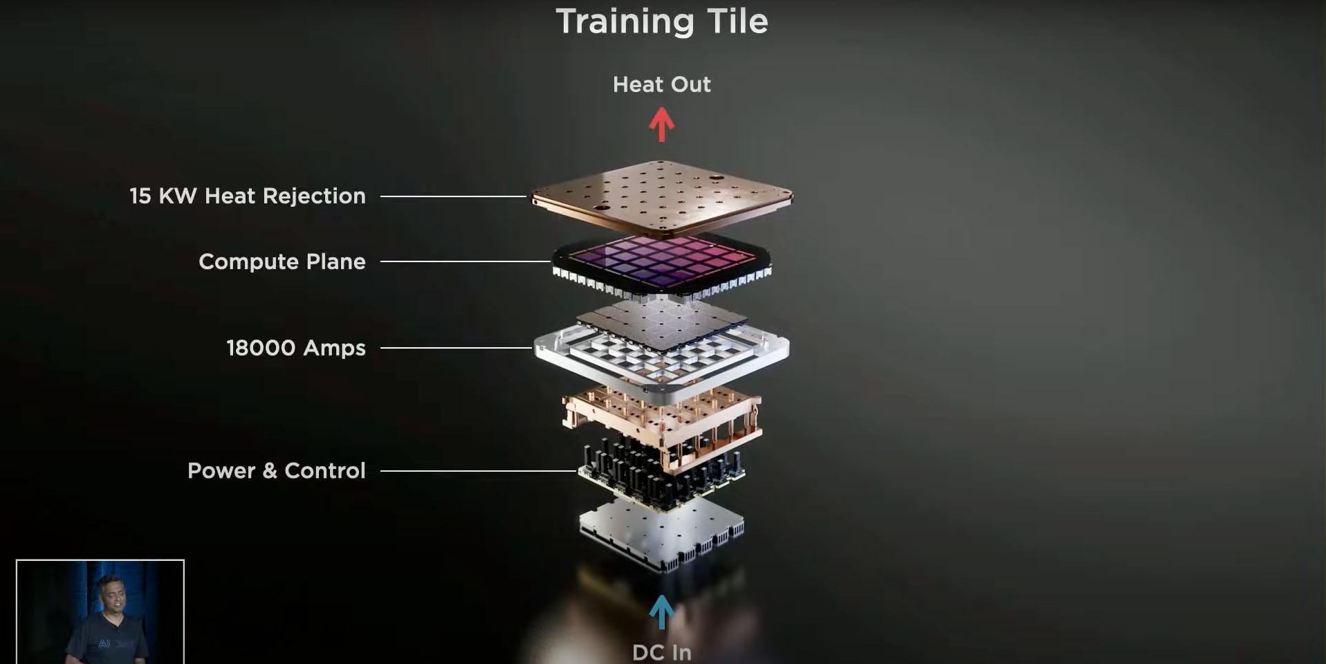 The D1 chip can join with other D1 chips to work together. Tesla built a training tile that consists of 25 D1 chips.