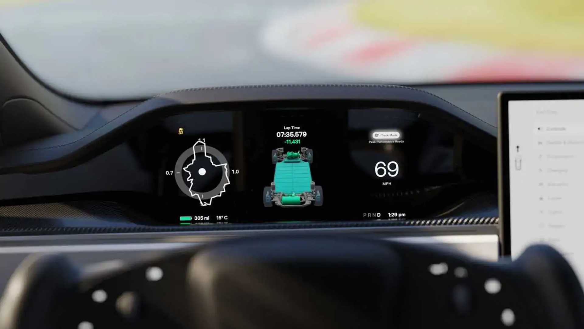 Tesla mentions also new adjustable vehicle dynamics, including changes to the regenerative braking, adaptive suspension damping and a new Performance UI with a track-focused user interface to provide critical performance data, including: