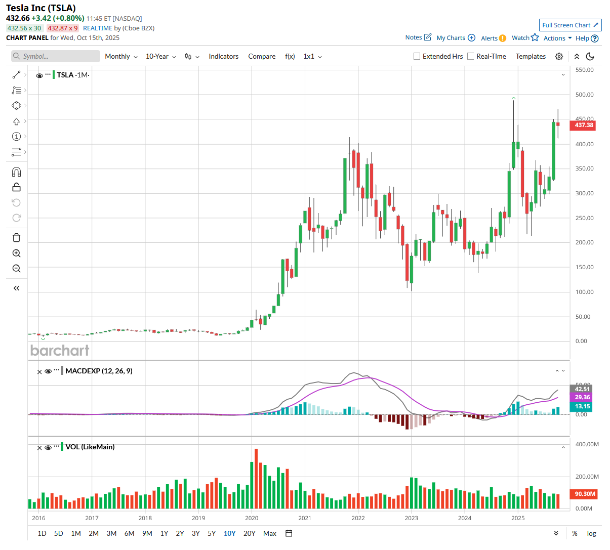 Alternatively, Tesla's automotive gross margin has fallen to 17.2% in Q2 of 2025 from 28.5% in 2022. Price cuts aimed at stimulating demand have squeezed profitability, as the company faces a multi-quarter sales slump due to aging EV models and fierce competition, especially from China's BYD.