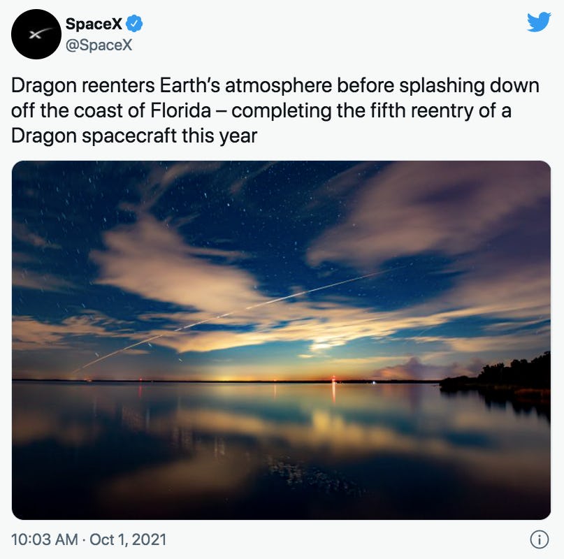 SpaceX successfully completed its 23rd cargo resupply mission to the International Space Station the morning of September 30, proudly sharing a photo of placid Florida waters after Cargo Dragon made an easy splash down on October 1.