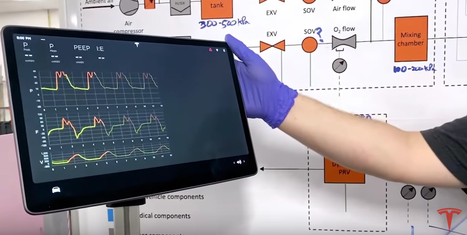 Our Magic 8 ball is still telling us to check back later on this one. It’s obvious from this video preview that Tesla has made swift progress in creating and testing a prototype ventilator from its existing car parts.