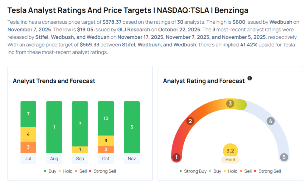 - Stifel raised Tesla, Inc. (NASDAQ:TSLA) price target from $483 to $508. Stifel analyst Stephen Gengaro maintained a Buy rating. Tesla shares closed at $404.35 on Friday. See how other analysts view this stock.