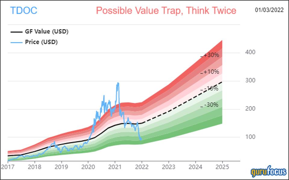 The company, which provides online health care services, has a market cap of $14.81 billion; its shares were trading around $92.73 on Monday with a price-book ratio of 0.93 and a price-sales ratio of 7.43.
