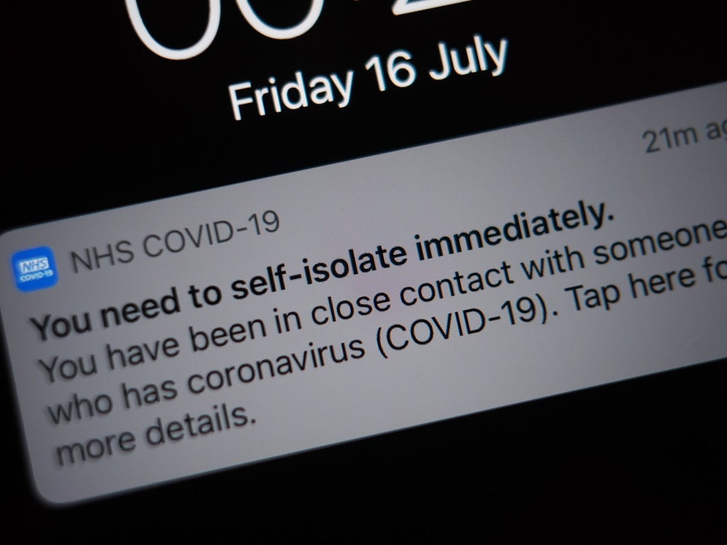 The latest official figures showed that more than half a million alerts were sent to users of the NHS app in England and Wales in the seven days to 7 July, asking them to self-isolate due to close contact with a positive Covid case.