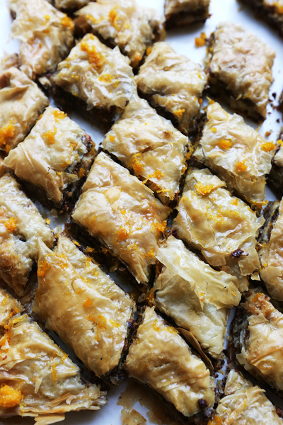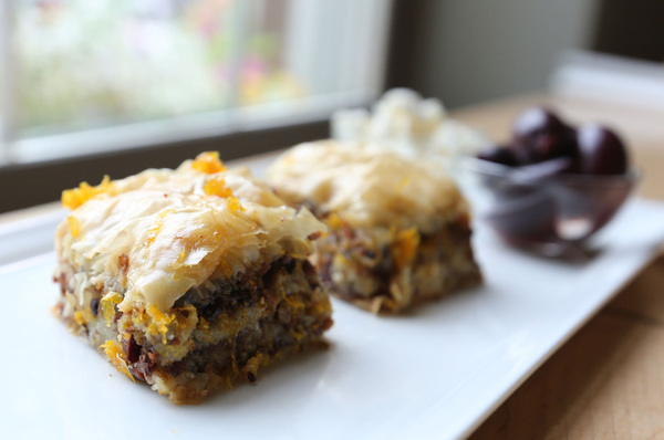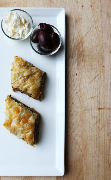 One last thing that was different about this recipe: using olive oil to brush on the phyllo layers. Usually the layers are doused in butter. The olive oil adds a richness to each layer, and it also helps crisp the layers.